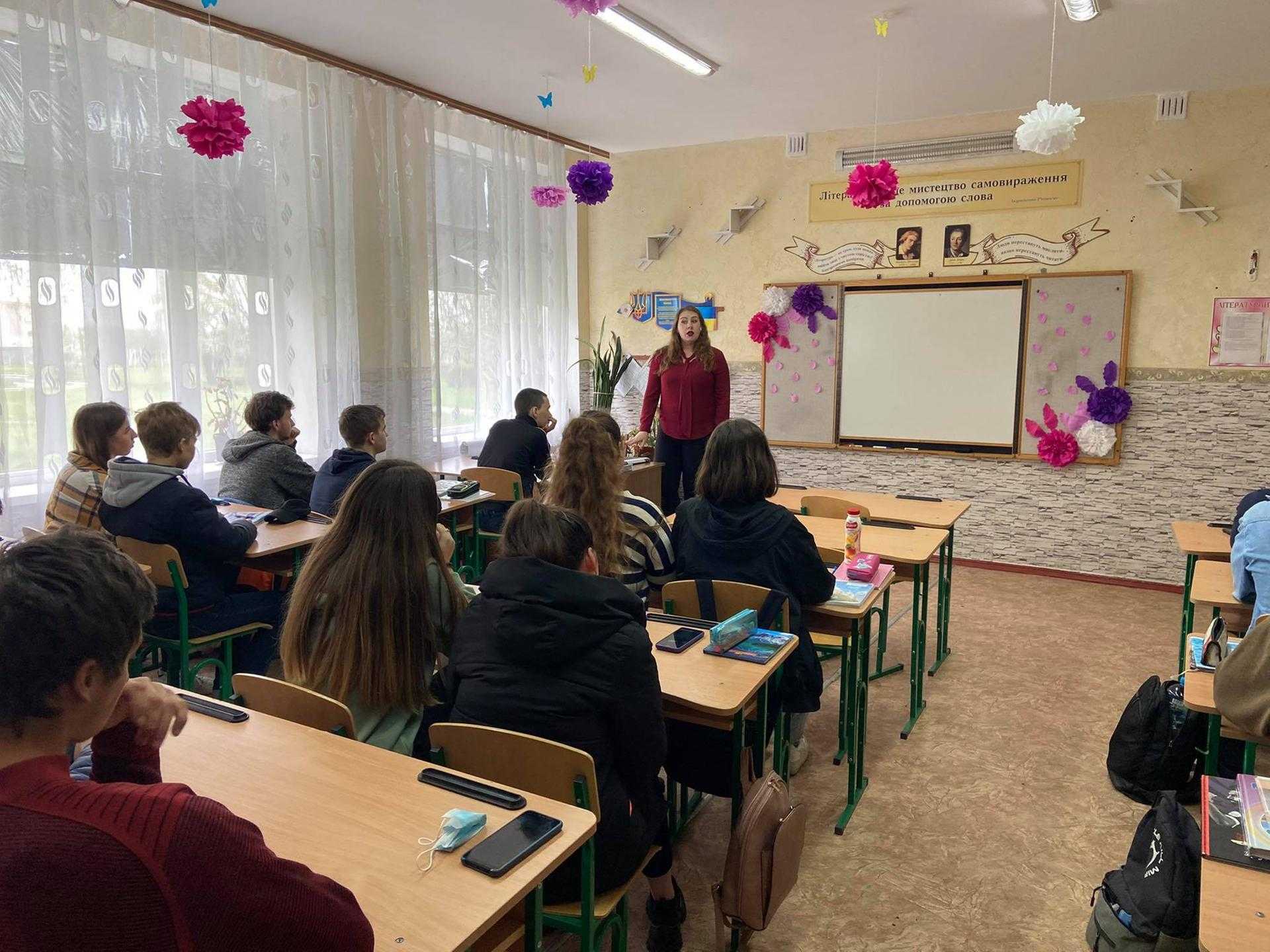 Спеціаліст презентувала Одеський ЦПТО та послуги, які надає служба зайнятості школярам і випускникам, обговорили актуальні вакансії на місцевому ринку праці, учні пройшли тестування.