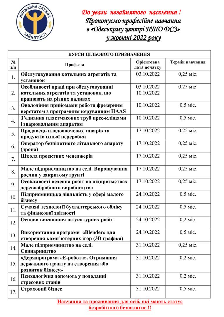 Нагадуємо, що для зареєстрованих безробітних навчання безоплатне.