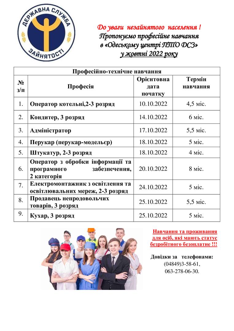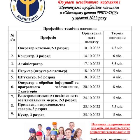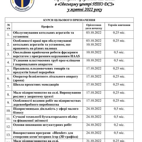 Представляємо вашій увазі орієнтовний графік формування навчальних груп у жовтні 2022 року в «Одеському центрі ПТО ДСЗ»