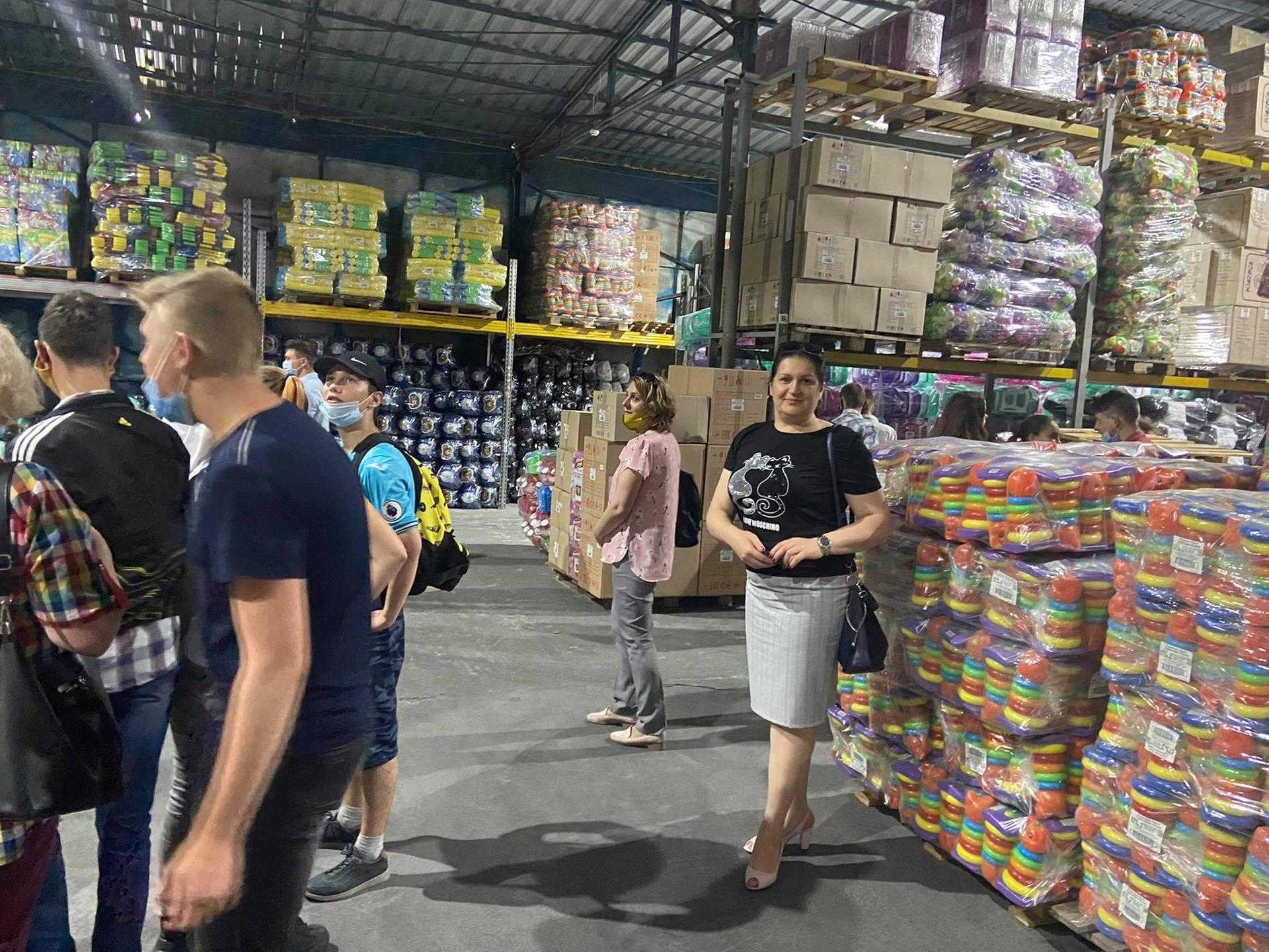 А, наприкінці заходу, гостей провели на склади, де від розмаїття кольорів та форм розбігалися очі. І, хоч школярі були учнями старших класів, - з задоволенням слухали екскурсовода та випробовували іграшки на собі, знову поринаючи в щасливе минуле.