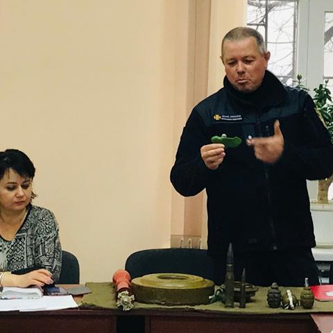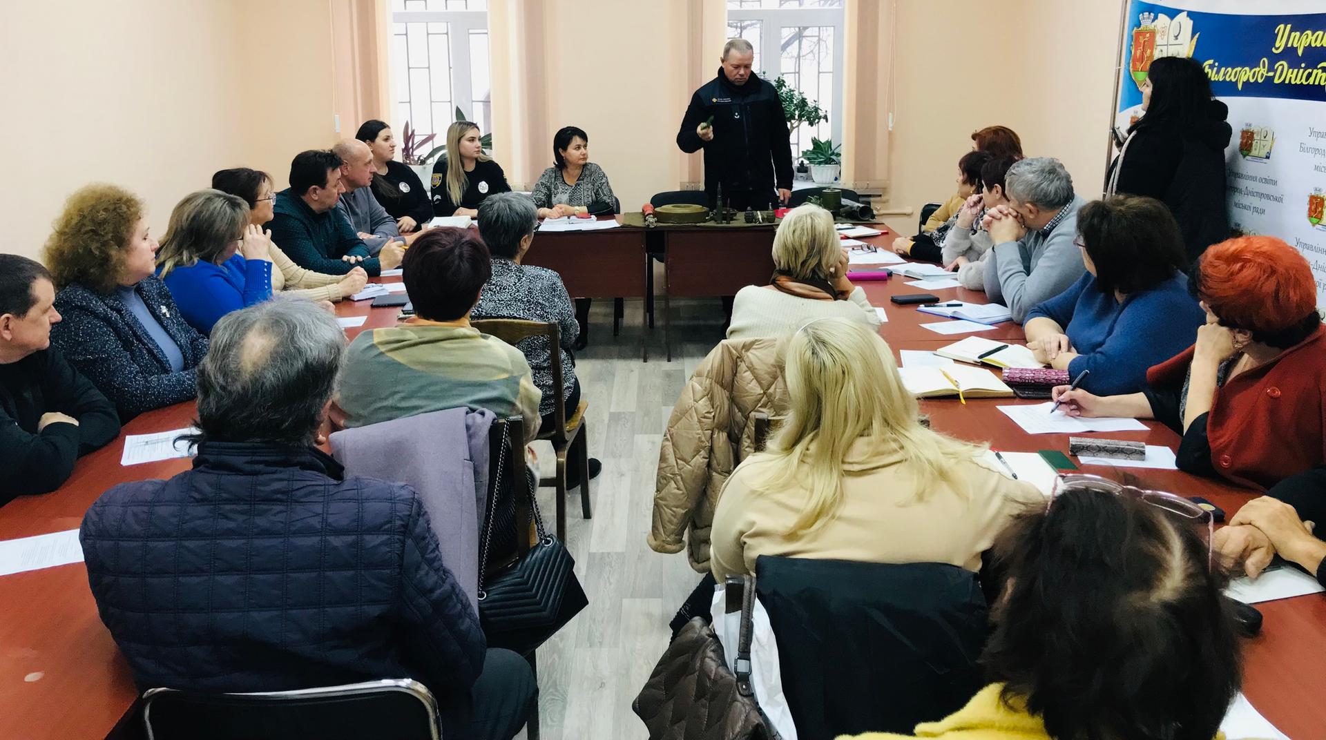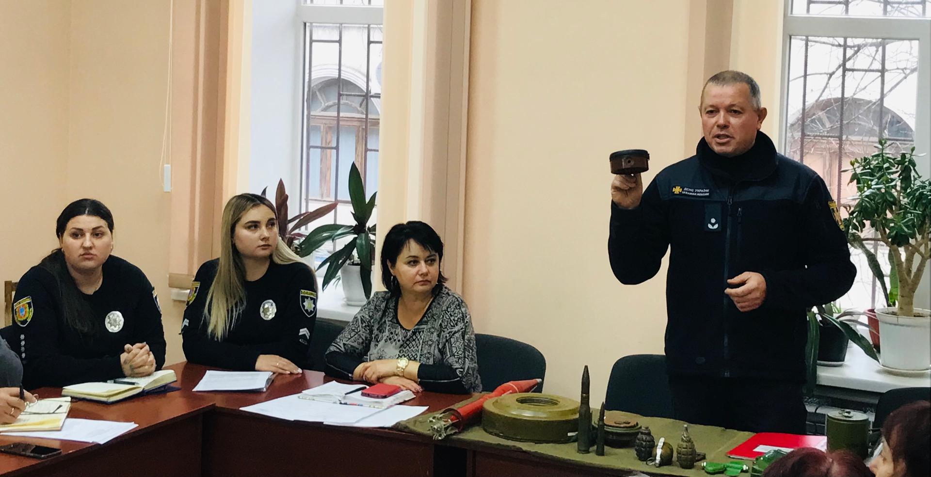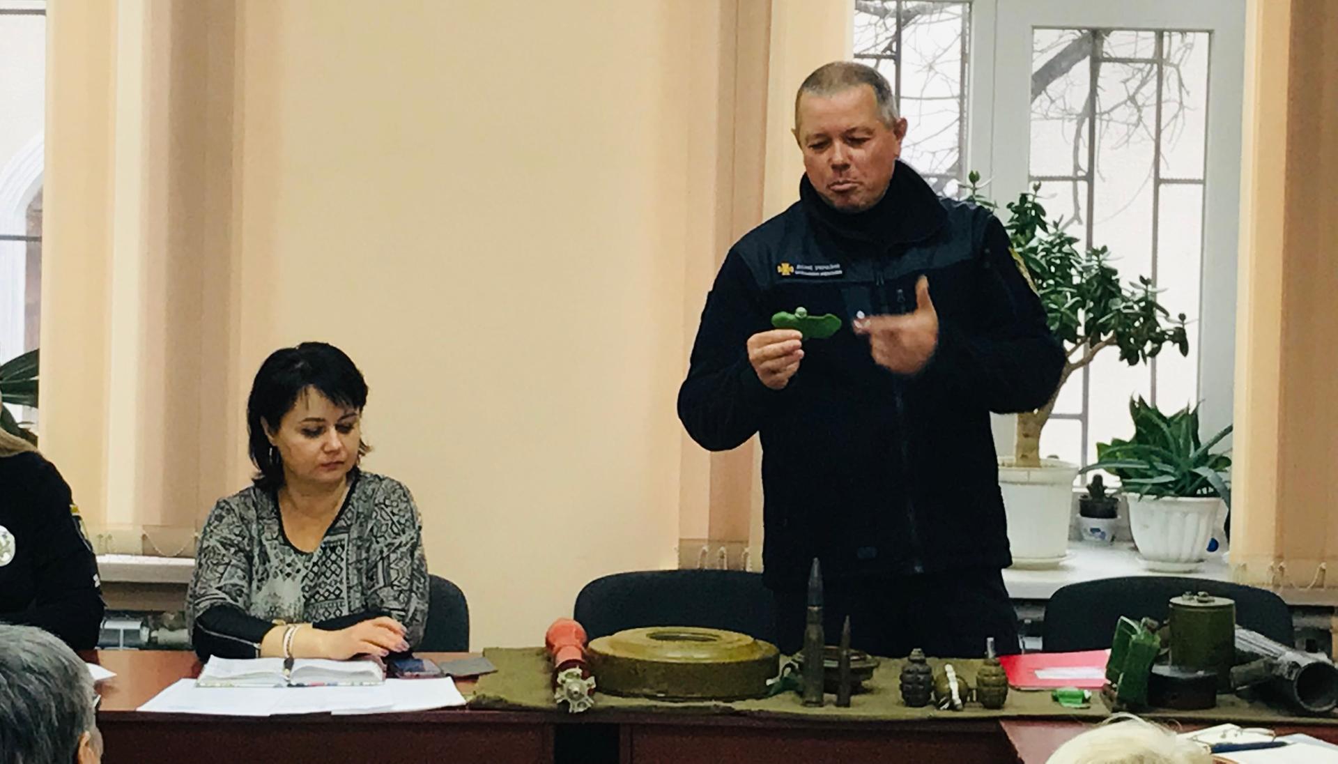 Начальник караулу 16-ї ДПРЧ другого ДПРЗ Головного управління ДСНС України в Одеській області майор цивільного захисту Дмитро Півень провів інструктаж з практичних навичок поведінки у разі надзвичайних ситуацій, виявлення мінно-вибухових предметів та алгоритмів оповіщення про виявлення таких предметів.