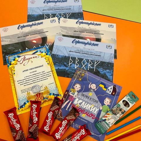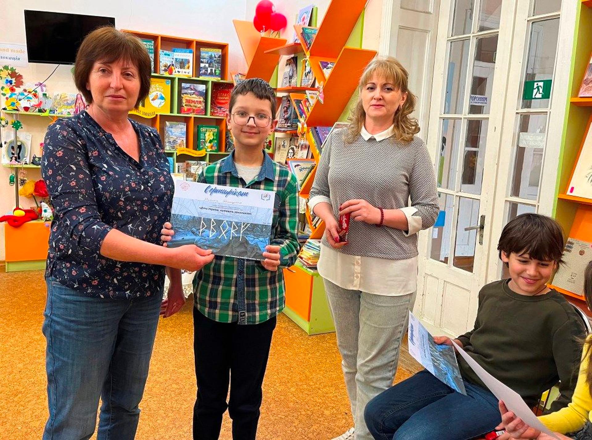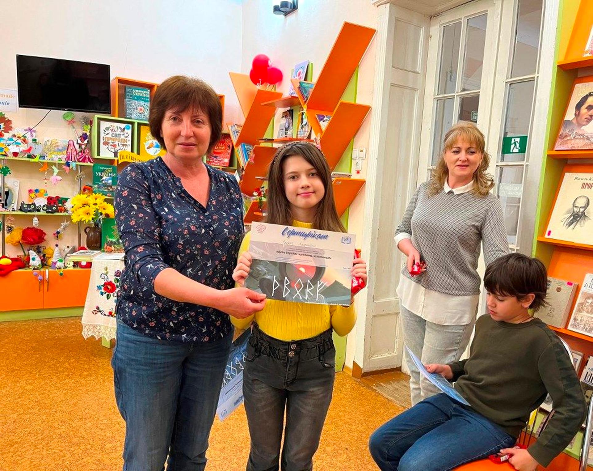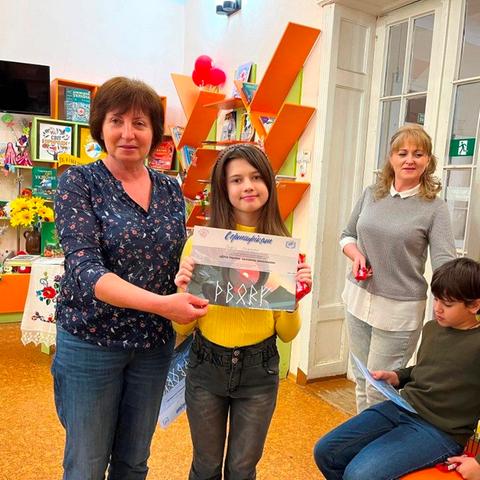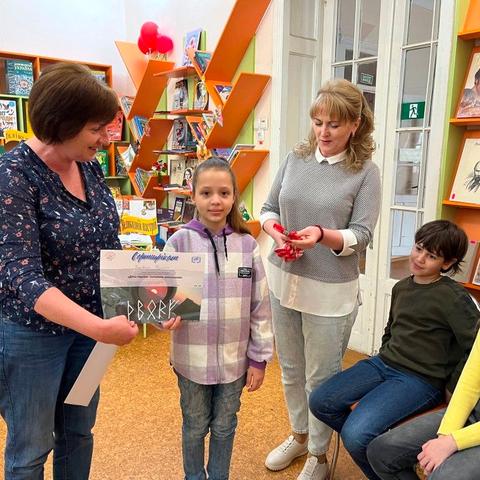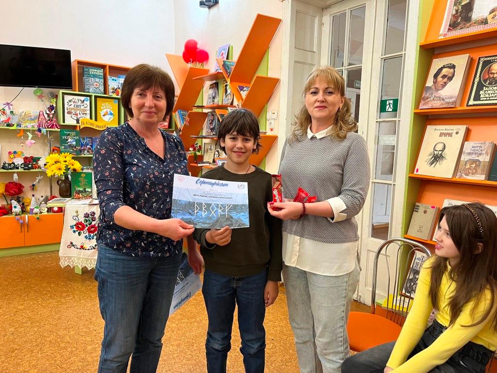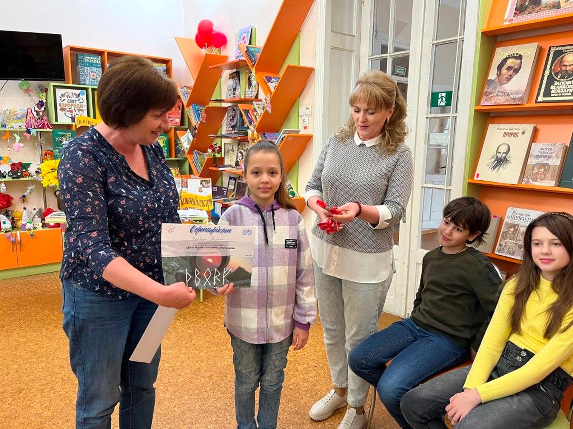 У відділі обслуговування дітей та юнацтва Публічної бібліотеки відбулось нагородження найактивніших читачів. Серед них мешканці міста та діти внутрішньо перемішених сімей. Варвара Кулініч, Микита Беницький, Софія Лафазан, Євген Кваша отримали сертифікати та солодкі подарунки за участь у Національному читацькому марафоні в рамках Всеукраїнського дитячого читання - 2024 «Діти України читають захисникам». А Аріна Оболяніна отримала подяку та подарунок за участь у ІІІ Всеукраїнському екологічному конкурсі дитячого малюнка «Майбутнє планети у наших руках».