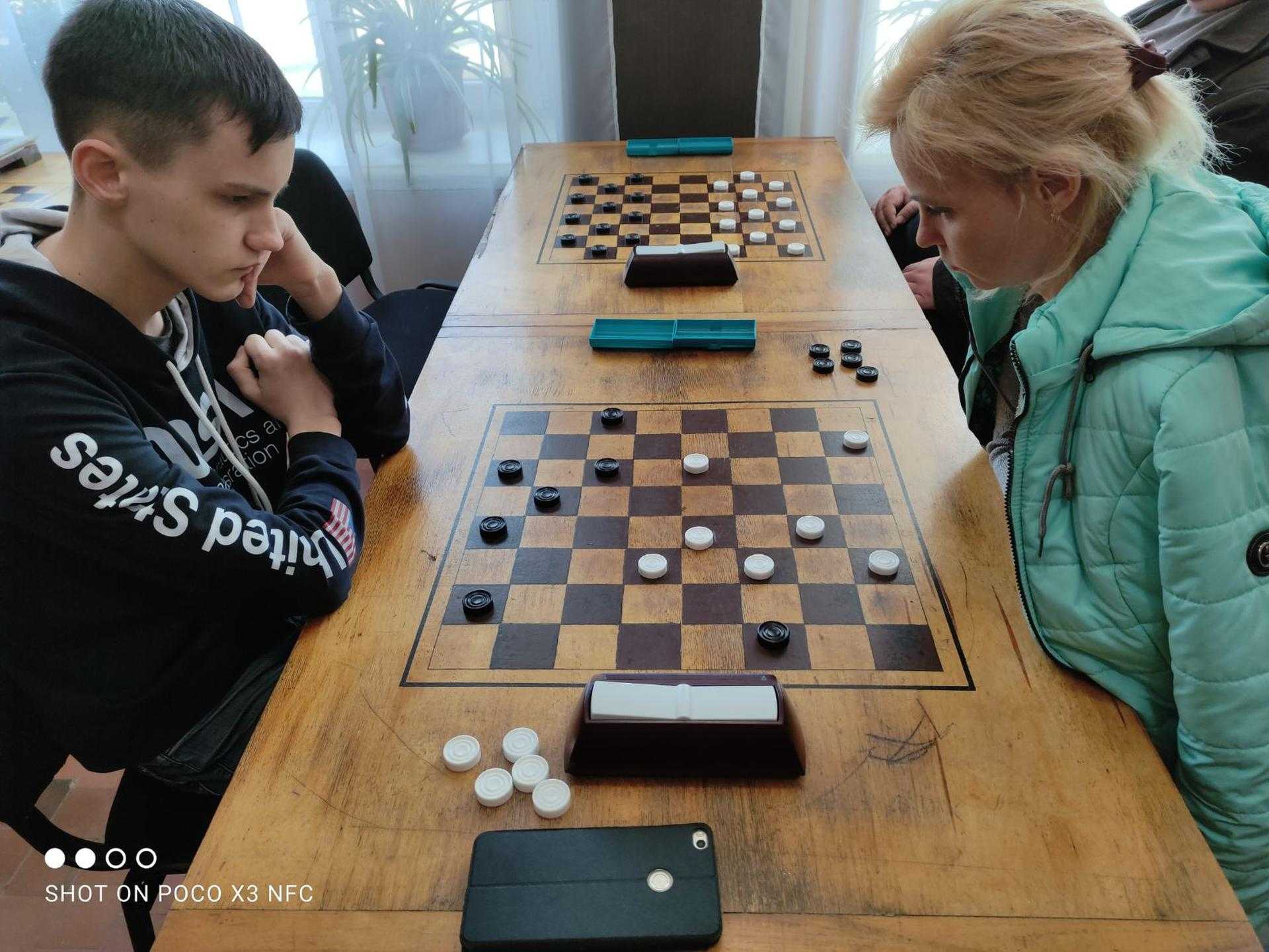 Суддя змагань з шашок Борис Олексійович Палій привітав всіх зі святом та побажав успіхів учасникам турніру – найсильнішим шашистам міста. Ігри проходили в два кола з контролем часу 3′+2′′ кожному гравцю до кінця партії. Ніхто не хотів програвати та демонстрував гостру гру. Як завжди, доля першого місця в таких блискавичних турнірах вирішувалась в особистій зустрічі між Олексієм Марченком та Юрієм Криворотом, де останній цього разу був сильніше 3-1. Дуже рівно провела турнір Ольга Смоліна. Боролася в кожній партії та демонструвала дуже добрі теоретичні знання.