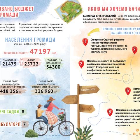 Це друкований буклет, де зібрана вся необхідна інформація, структурована та спрощена, щоб кожен зміг зрозуміти складні бюджетні процеси.
