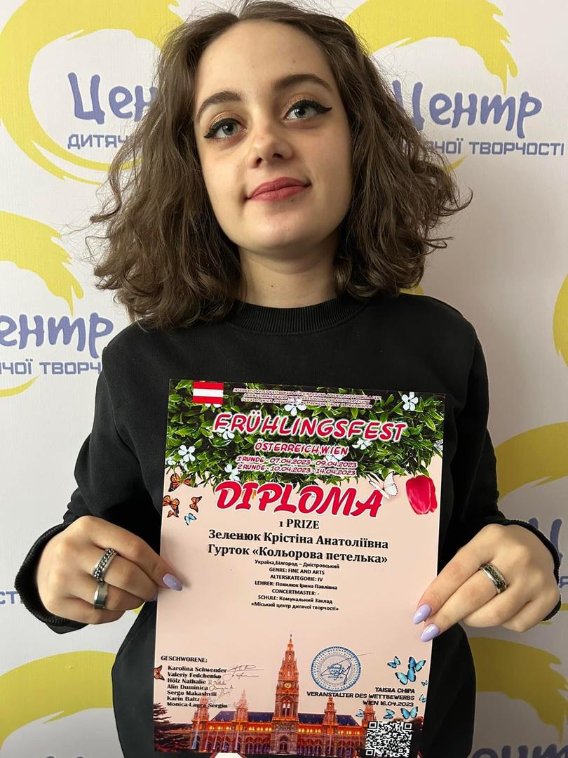 Крістіна Зеленюк та Ксенія Скиба нагороджені дипломами за І місця у номінації «Декоративно-ужиткове мистецтво», а Крістіна ще й зуміла вибороти І премію на Інтернаціональному двотуровому конкурсі мистецтв «FRUHLINGFEST OSTERREIH,WIEN».