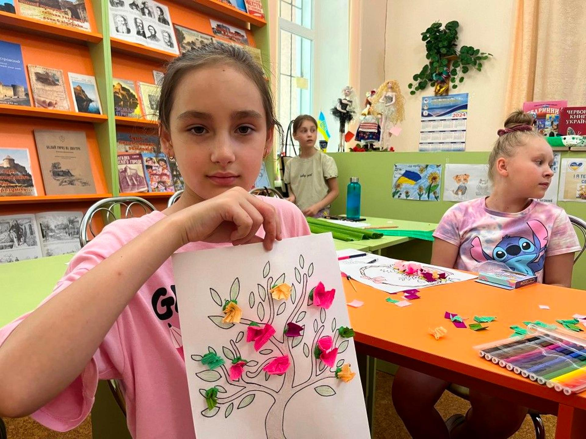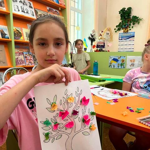 Тамара Бутюгіна – майстриня та волонтерка, провела майстер-клас, під час якого бібліотекарі разом з дітьми виготовили 3D аплікації з паперу.