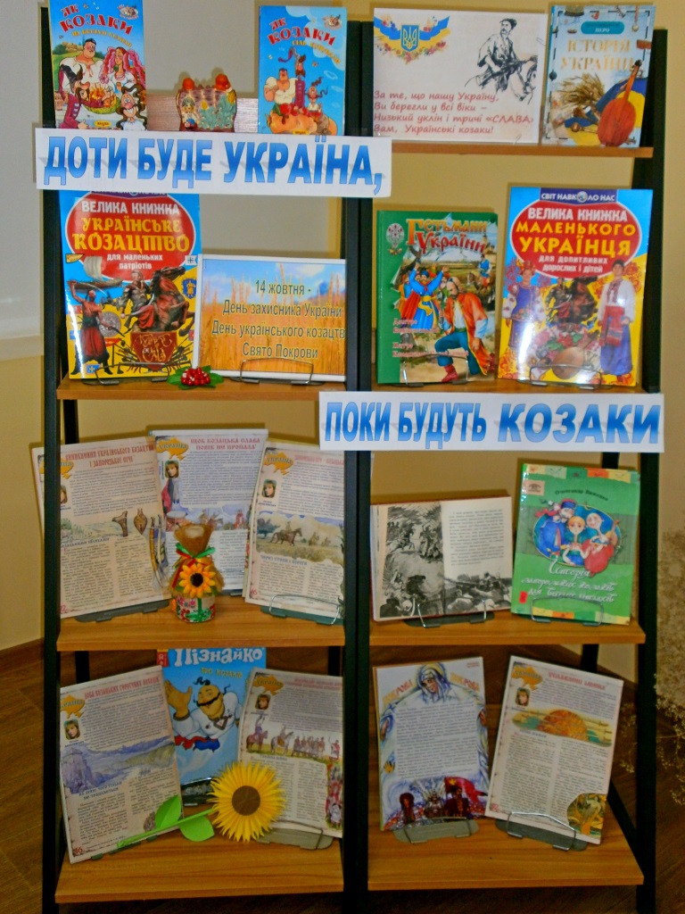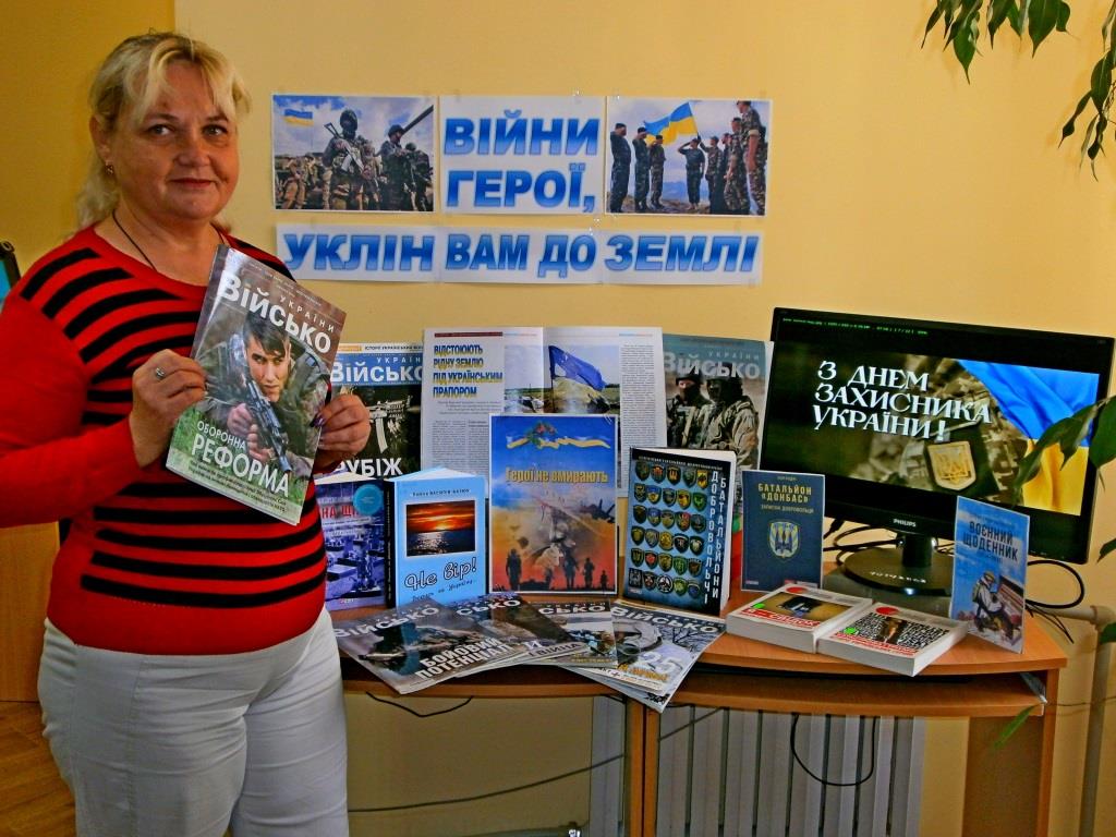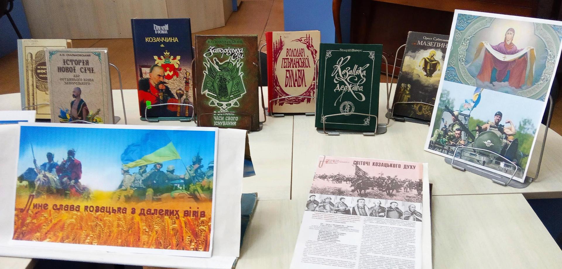 Публічна бібліотека запрошує познайомитись з книжковою виставкою «Лине слава козацька з далеких віків», відділ обслуговування дітей та юнацтва Публічної бібліотеки запрошує молодь на відеопрезентацію «Cлавні лицарі козацької доби». Бібліотека-філія ім. О. Пушкіна організувала зустріч з малечою в освітньо-культурному медіа-центрі з переглядом мультиків про козаків «Доти будує Україна, поки будуть козаки». Бібліотека-філія ім. Л. Українки біля своєї бібліотеки, прямо на вулиці, заохочує всіх небайдужих містян поспілкуватися на тему українського козацтва.
