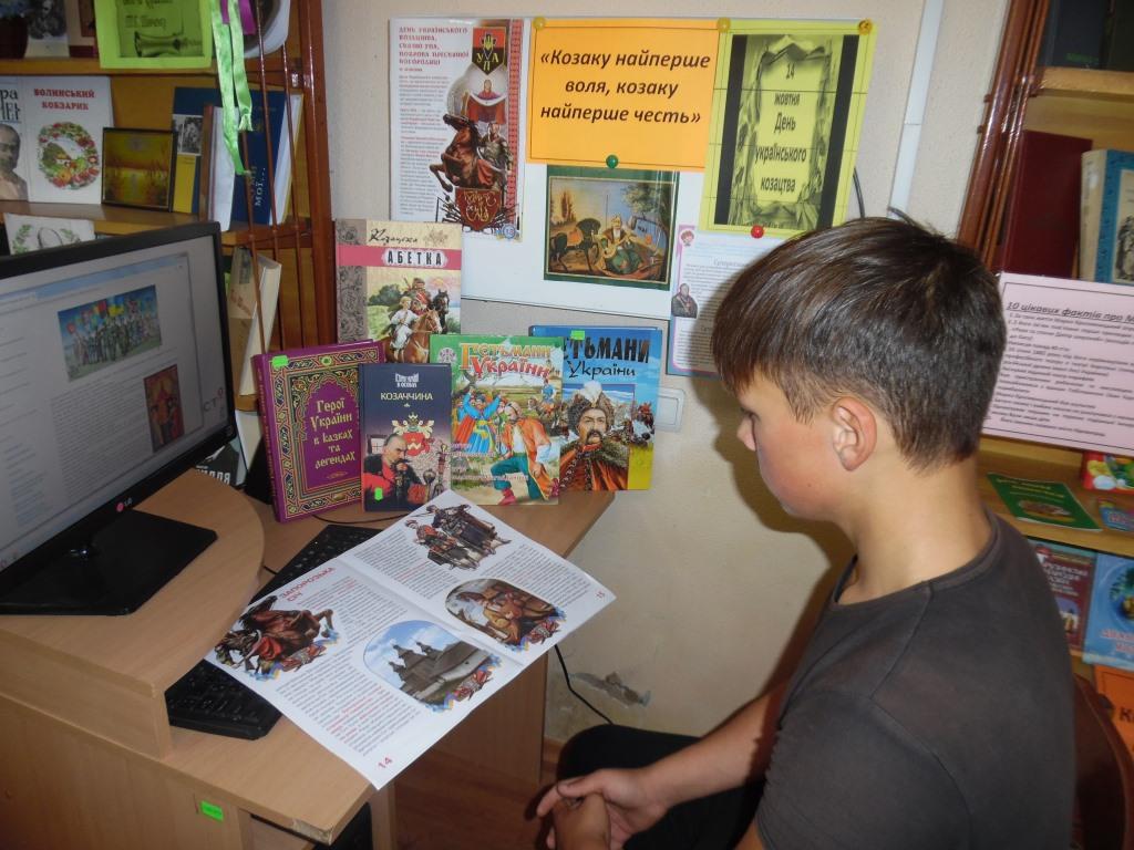 У бібліотеці-філії ім. М. Кропивницького діє історичний відео-екскурс «Козаку найперше воля, козаку найперше честь».