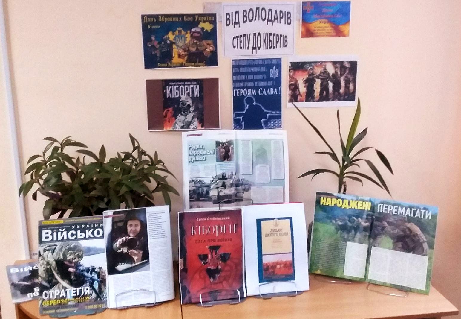 В руслі патріотизму і незламності духу бібліотеки міста провели низку заходів. Виставка-шана «Від володарів степу до кіборгів» експонується в бібліотеці-філії ім. О. Пушкіна, година спілкування «Свято доблесті і мужності» відбулася у відділі обслуговування дітей та юнацтва Публічної бібліотеки, патріотична виставка «Ми славного роду і крові свій народ боронити готові» діє в бібліотеці-філії ім. Лесі Українки.
