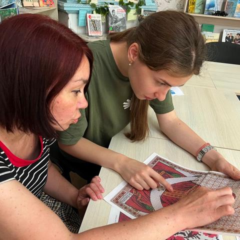 Бібліотекар Галина Тітова працює у відділі комплектування та каталогізування фондів. У вільний від роботи час займається вишиванням. В читальній залі Публічної бібліотеки представлена виставка її творчих виробів «Краса барв і візерунків». Серед робіт декоративні серветки, картини. Скромна трудівниця, щира у відносинах з колегами та талановита жінка, пані Галина володіє багатьма техніками вишивки – гладь, мережки, хрестик, ділиться порадами з колегами та читачами.