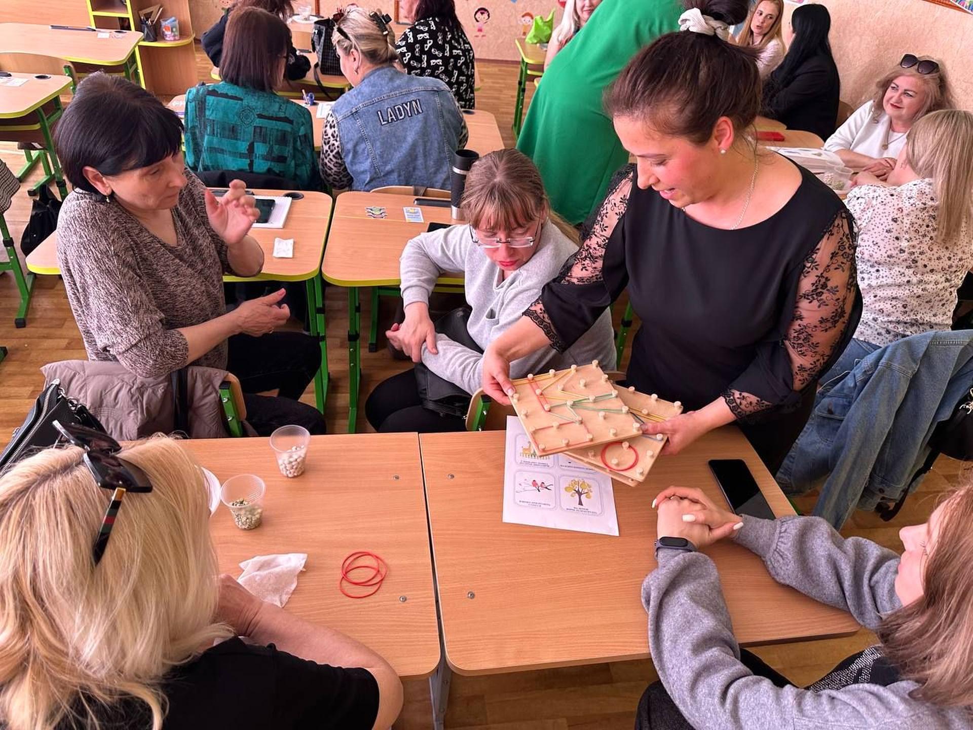 У ході семінару Вікторія Мирза, вчитель початкових класів ЗЗСО №7, керівник професійної спільноти асистентів вчителів, розповіла про ігрові методи навчання дітей з особливими освітніми потребами, продемонструвала ігри, які доцільно використовувати для дітей із затримкою психічного розвитку. Колеги ділились досвідом, демонстрували власні ідеї та підходи до роботи з учнями з ООП.