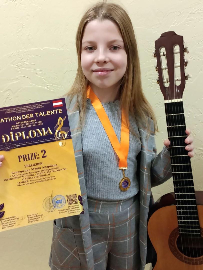 Марія Бондаренко - вихованка Білгород-Дністровської школи мистецтв ім. Л.Н. Гінзбург (викладач Лілія Василенко) вдало виступила на міжнародному багатожанровому конкурсі мистецтв «Марафон талантів», який проходив у Відні, та посіла ІІ місце.