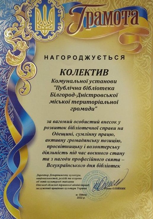 Бібліотеки Білгорода-Дністровського прагнуть в складних умовах війни залишатися невід’ємною частиною громади та забезпечити вільний доступ користувачів до цікавої інформації, знань та культурних надбань.