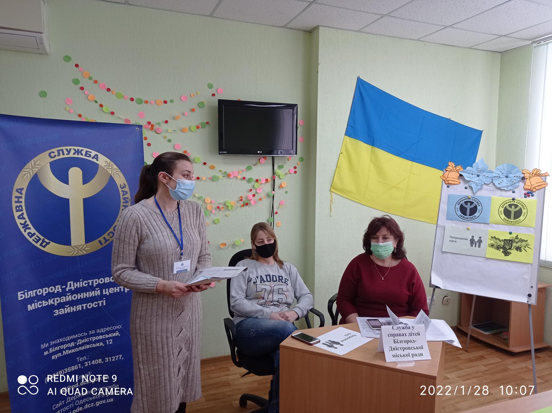 Одним із пріоритетних завдань служби зайнятості наразі є інформування громадськості про суть та зміст патронату над дитиною у тісній співпраці із службами у справах дітей. 28 січня 2022 року у Білгород-Дністровському міськрайонному центрі зайнятості відбулася групова консультація за участю служби у справах дітей Білгород-Дністровської міської ради. Метою заходу стало орієнтування осіб, які мають статус безробітного на здійснення патронату над дитиною, як вид зайнятості.
