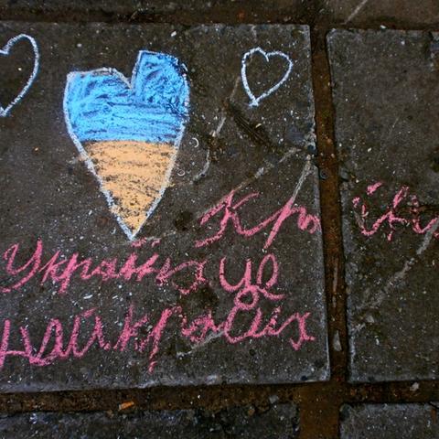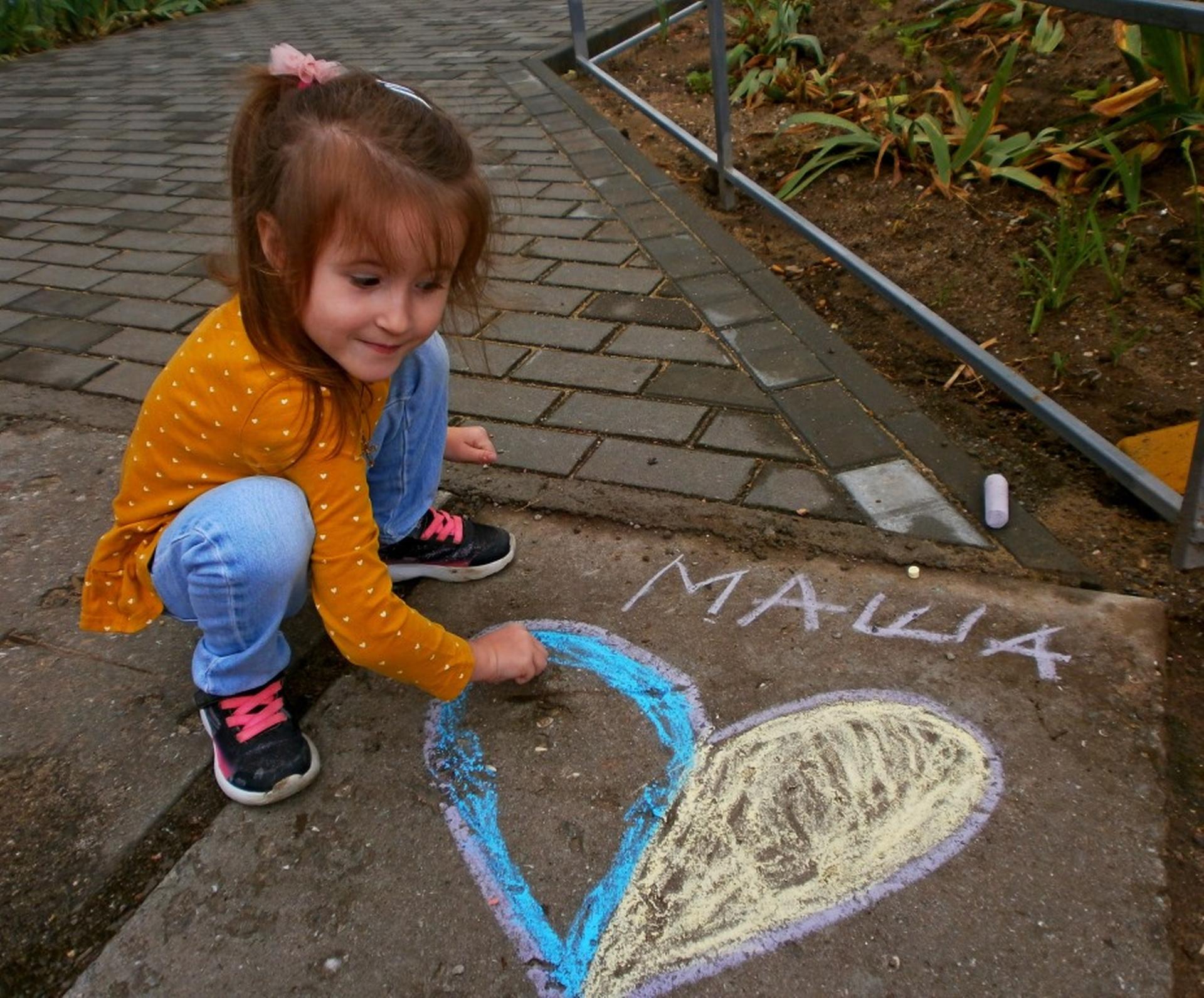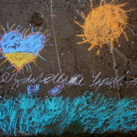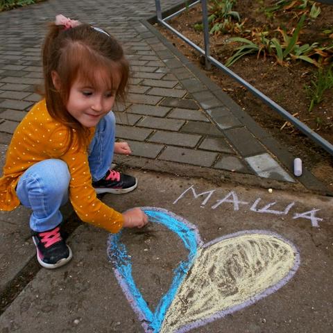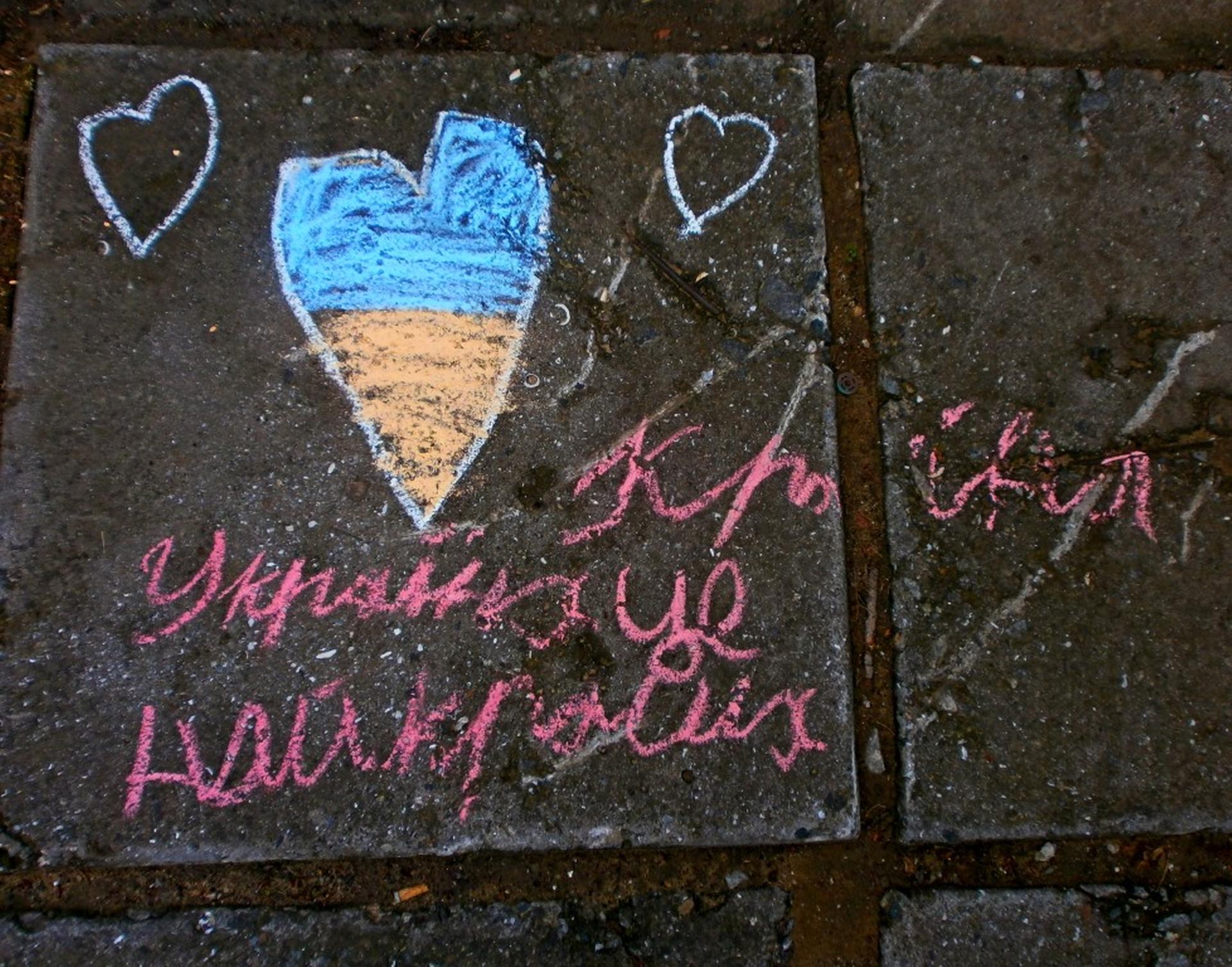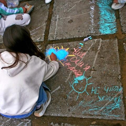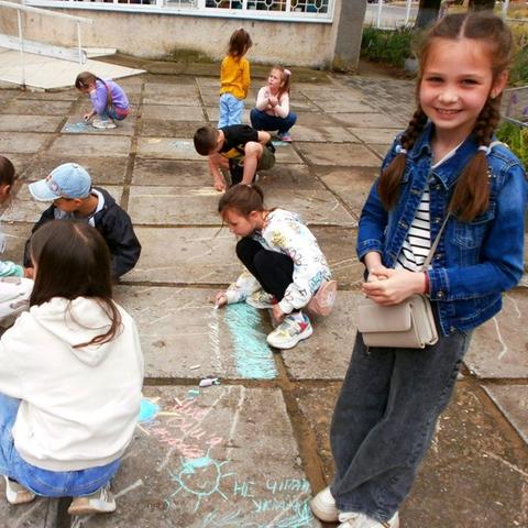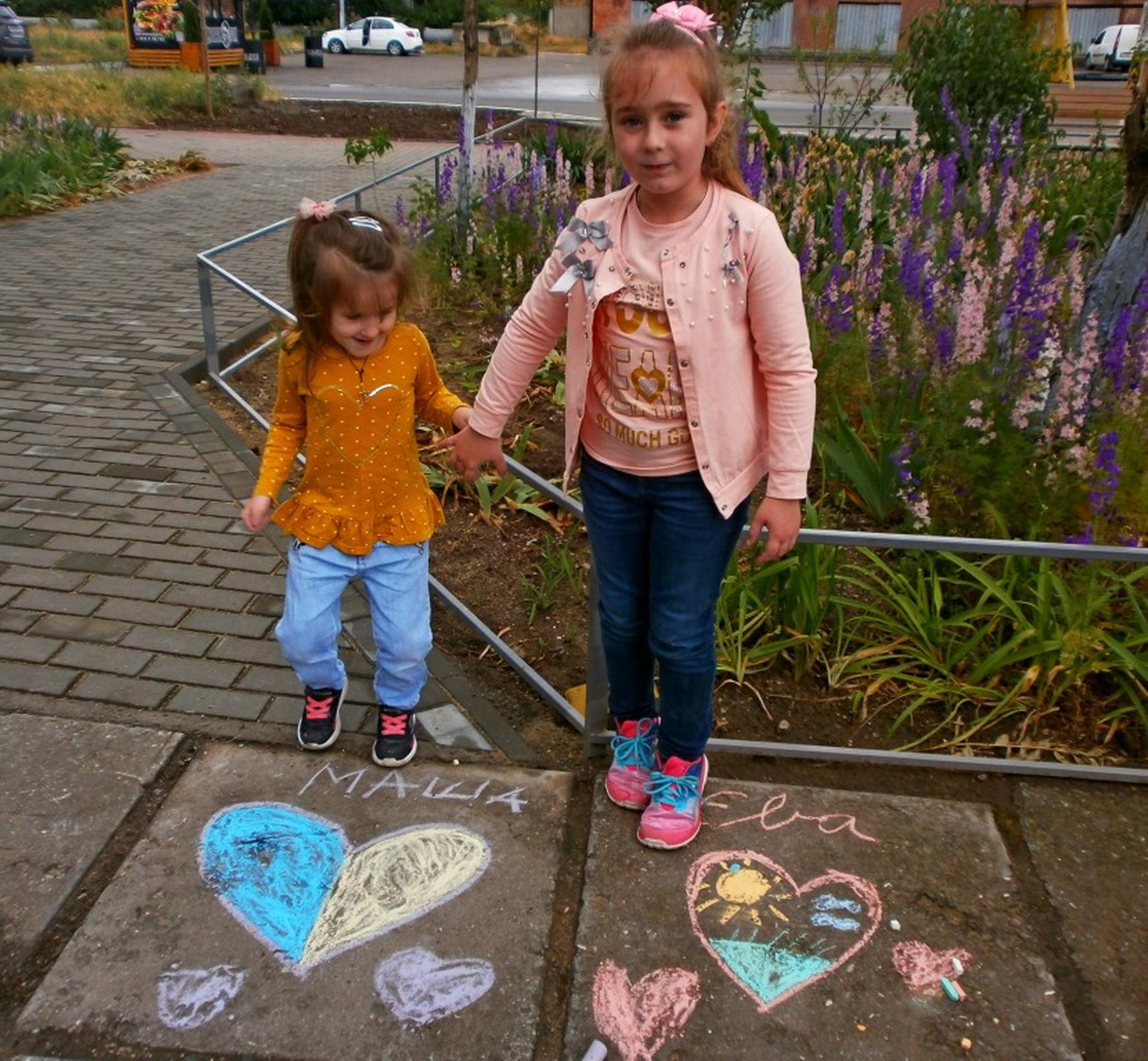 Гості бібліотеки проявили свої творчі здібності ще й на подвір’ї бібліотеки, розмальовуючи крейдою. Тематику діти обрали патріотичну, колір малюнків переважно жовтий та блакитний. Бібліотекарі, в свою чергу, запросили дітлахів приходити на різноманітні бібліотечні заходи з рідними та друзями.