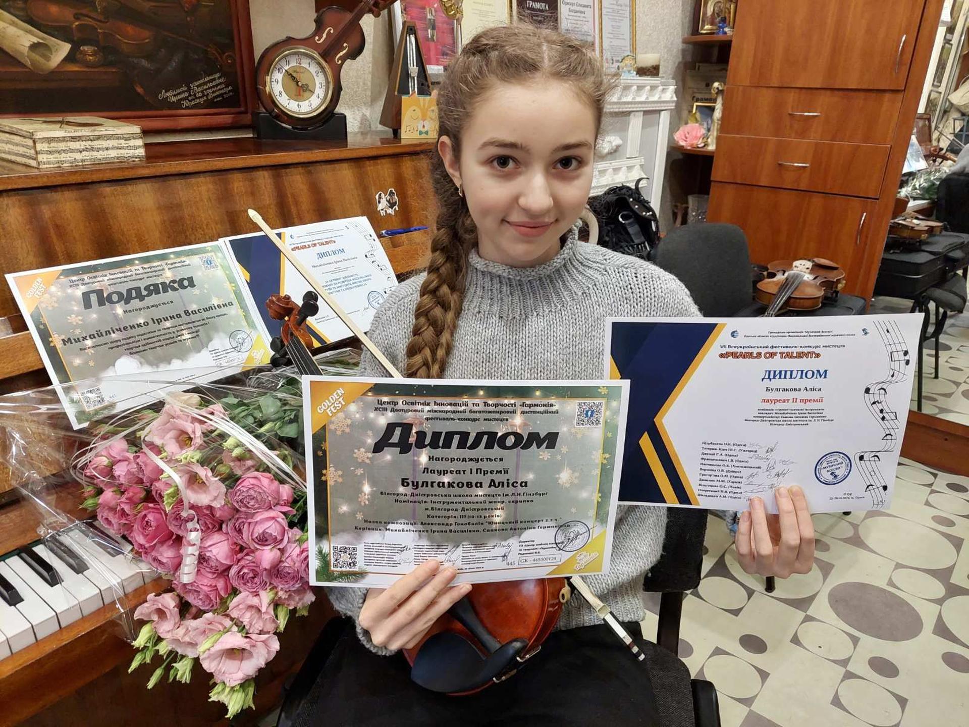 Юна скрипалька посіла І місце на Міжнародному багатожанровому конкурсі мистецтв «Golden Fest» та ІІ місце на Всеукраїнському фестивалі «Pearls of talent».