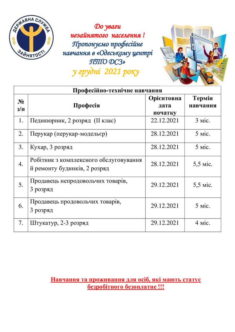 Звертаємо Вашу увагу на графік формування навчальних груп у грудні 2021 року! Зробіть найкращий новорічний подарунок та змініть своє професійне життя на краще, отримавши затребувану професію на регіональному ринку праці.