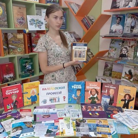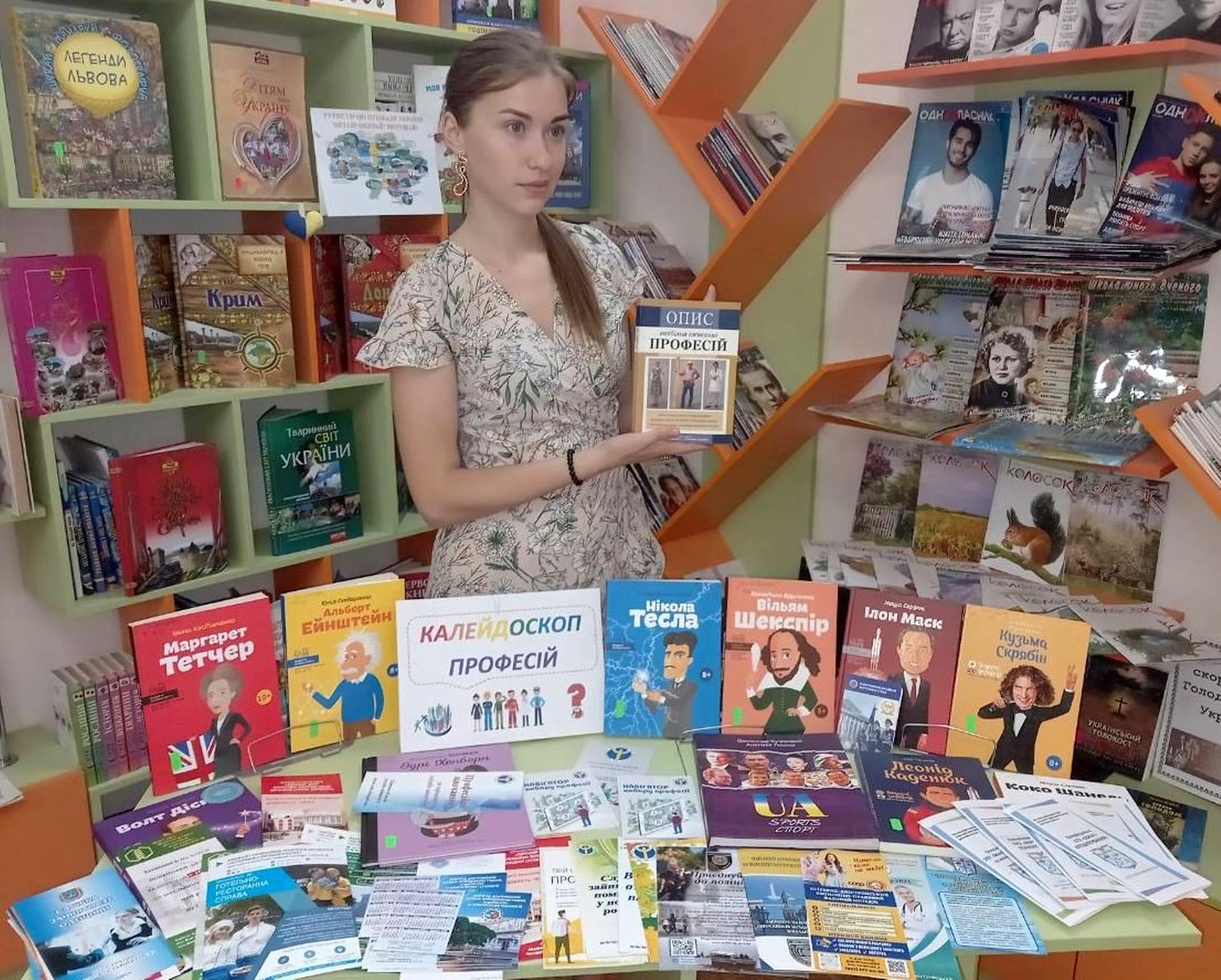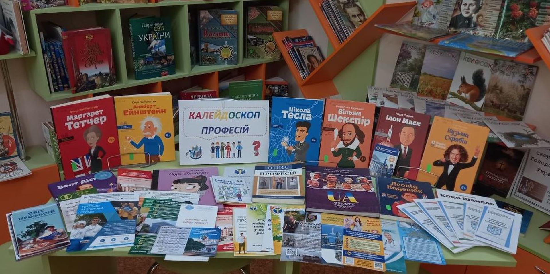 Бібліотекарі відділу обслуговування дітей та юнацтва Публічної бібліотеки постійно проводять бесіди, щоб допомогти усвідомлено вибрати юним користувачам майбутню професію. Звичайно, і форми роботи бібліотек з цього напрямку досить різноманітні і креативні. На даний час діє книжкова виставка «Калейдоскоп професій».