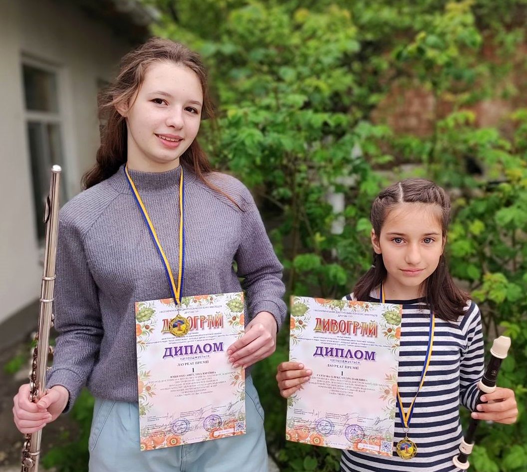 На Всеукраїнському конкурсі мистецтв «Дивограй» (м. Київ) Олександра Гурлєва в молодшій віковій категорії та Ангеліна Юшенко в старшій віковій категорії в номінації «Інструментальний жанр» (флейта) стали лауреатами І премії.