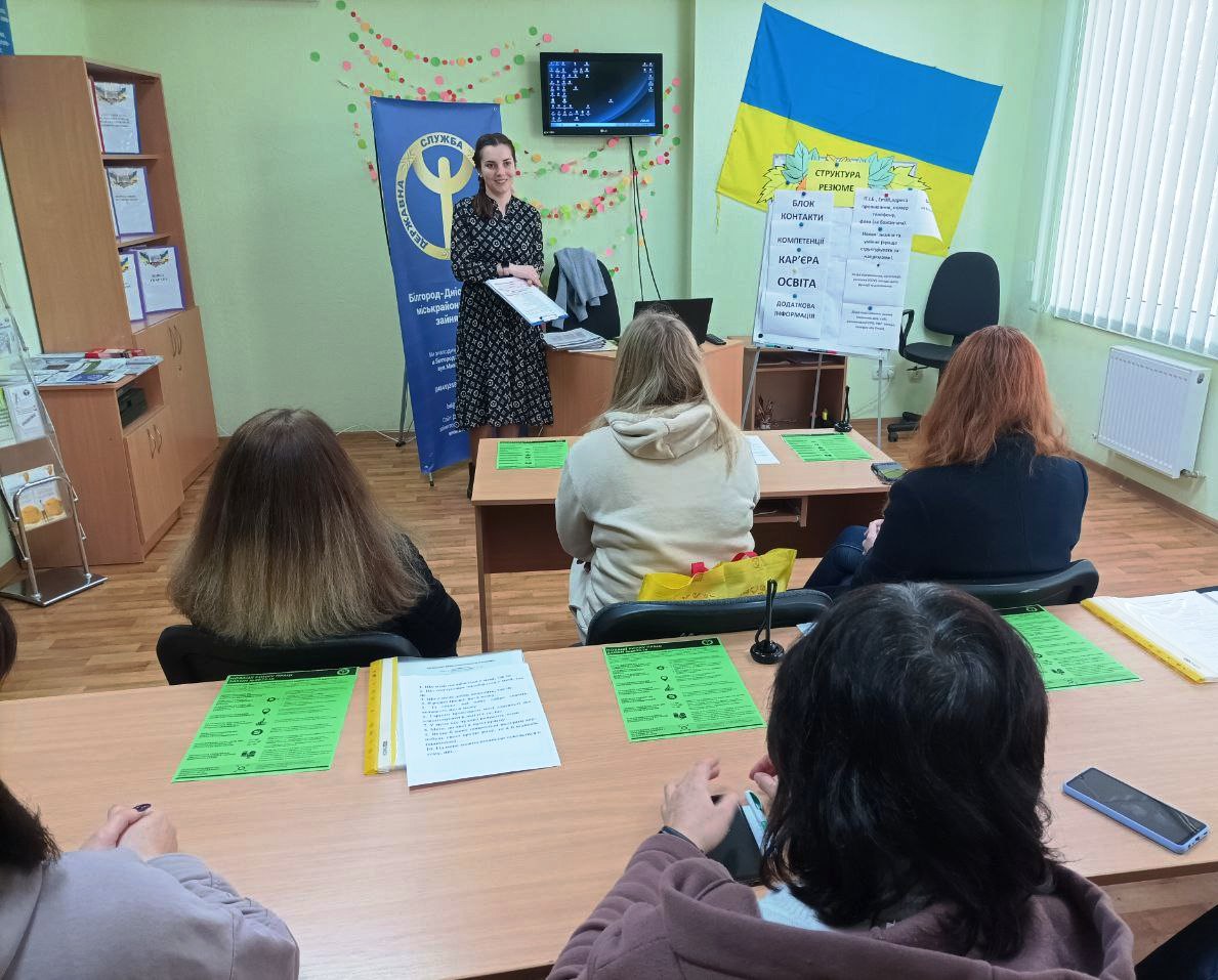 3 жовтня 2022 року провідний фахівець відділу активної підтримки безробітних Білгород-Дністровського МРЦЗ Оксана Долготер провела тренінг з техніки пошуку роботи «Підготовка резюме» для внутрішньо переміщених осіб.