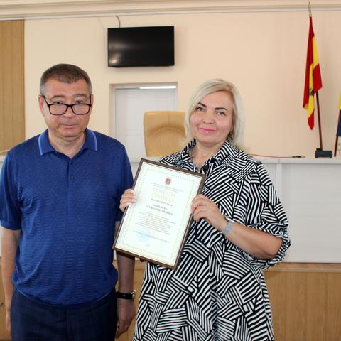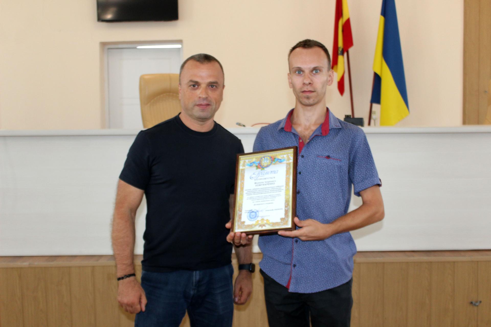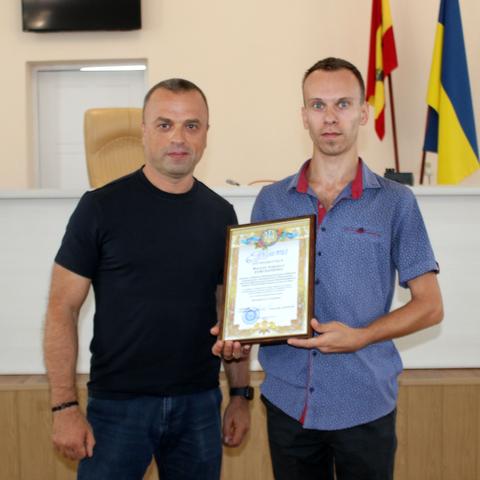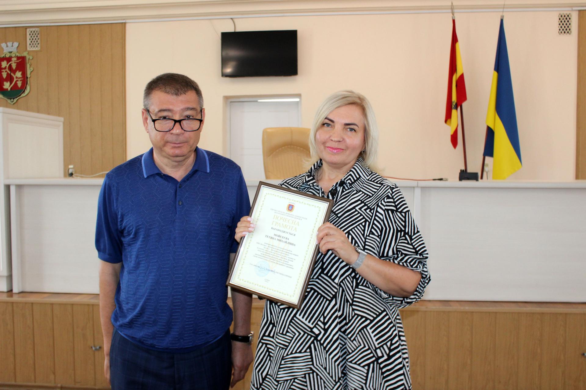 В. Самокиш вручив Почесні грамоти Департаменту охорони здоров’я Одеської обласної державної (військової) адміністрації працівникам КНП «Білгород-Дністровська міська багатопрофільна лікарня» Мойсеєвій Тетяні Михайлівні – медичному директору з поліклінічної роботи, та Дяба Сергію Івановичу – лікарю фізичної та реабілітаційної медицини, завідувачу відділенням медичної реабілітації.