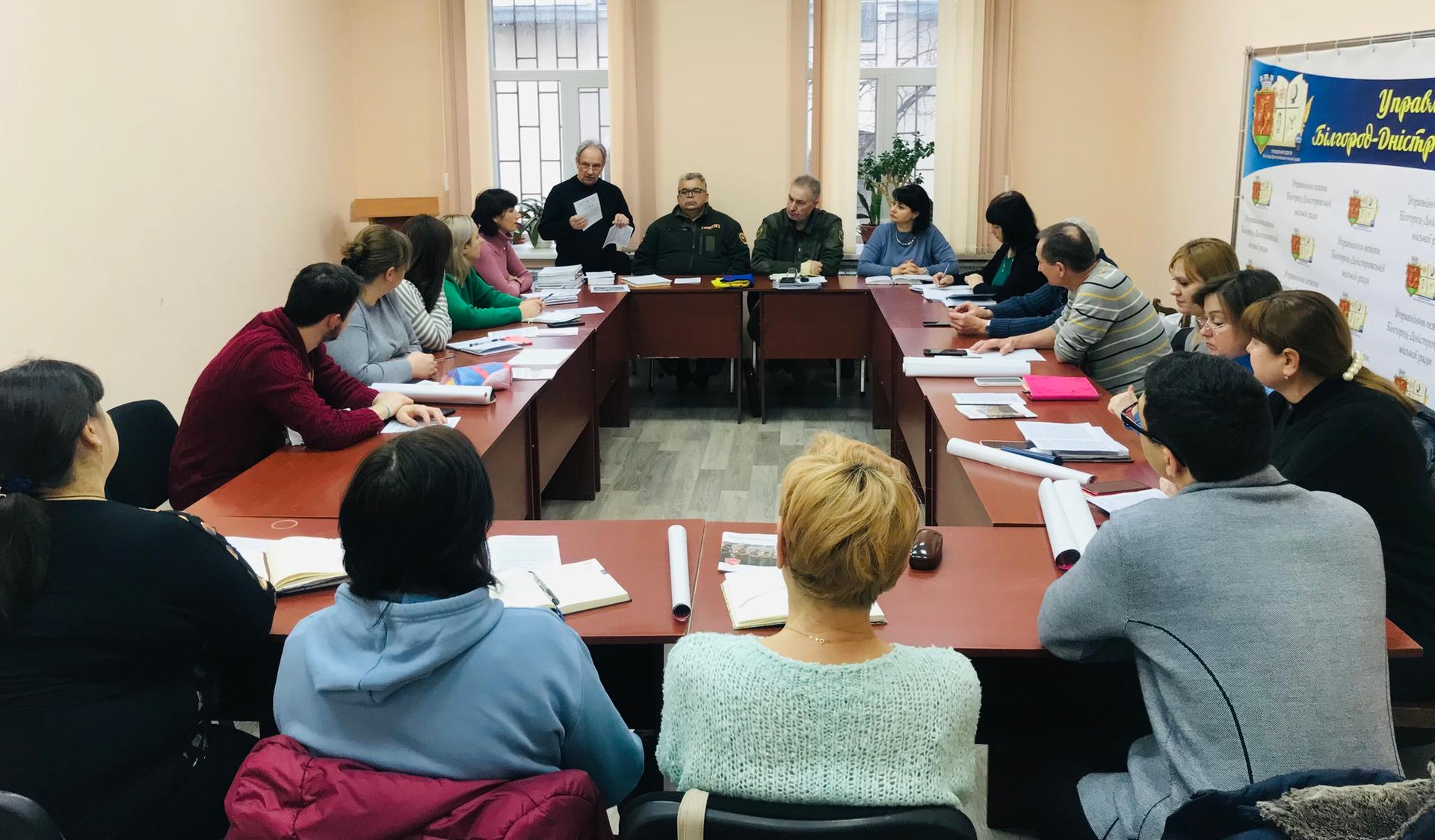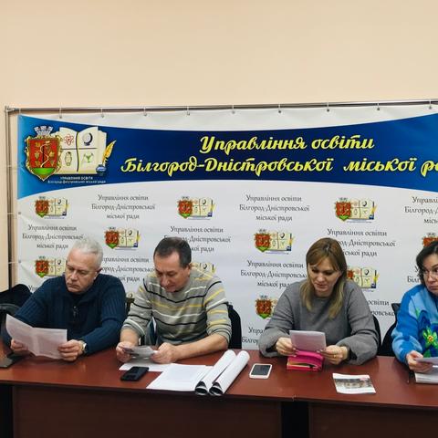 Начальник Управління освіти Олена Принц запросила долучитися до обговорення питання голову Білгород-Дністровської районної організації ветеранів України Тимофєєва Валерія, заступника командира Одеського братерського полку з національно-патріотичного виховання Хоперія Григорія та представника Громадської Спілки Всеукраїнського Військового Цивільного Об’єднання «Бойове Братерство України» Глухенького Юрія.