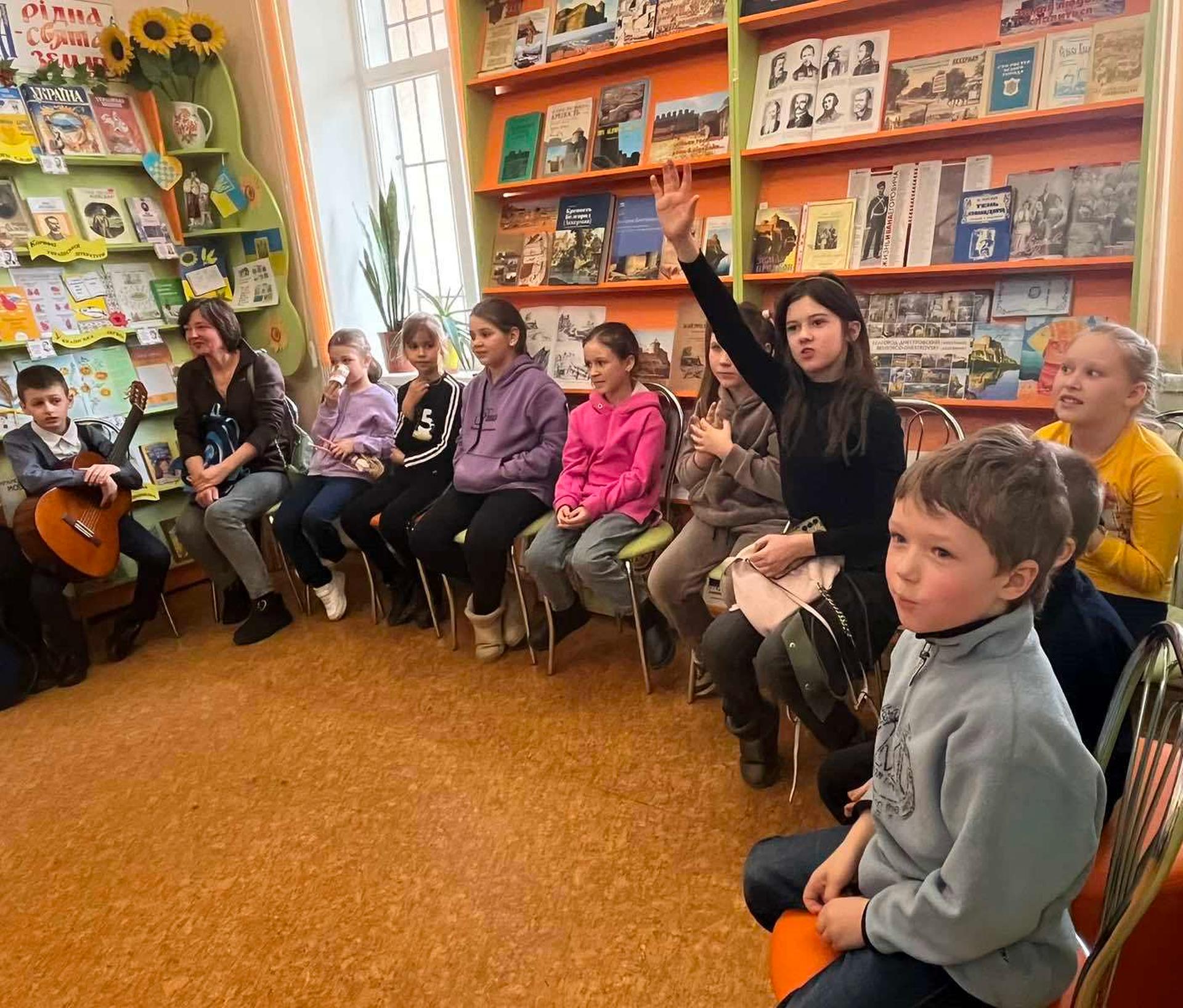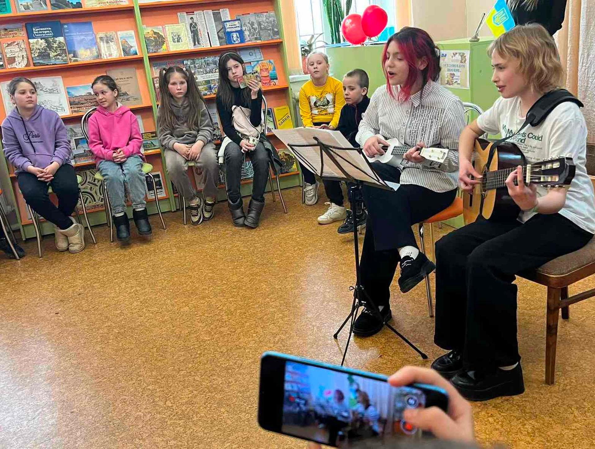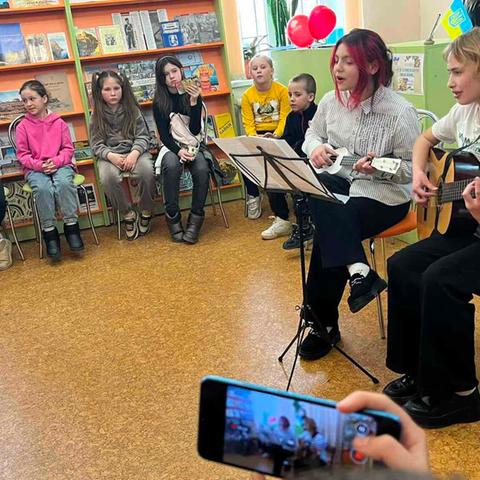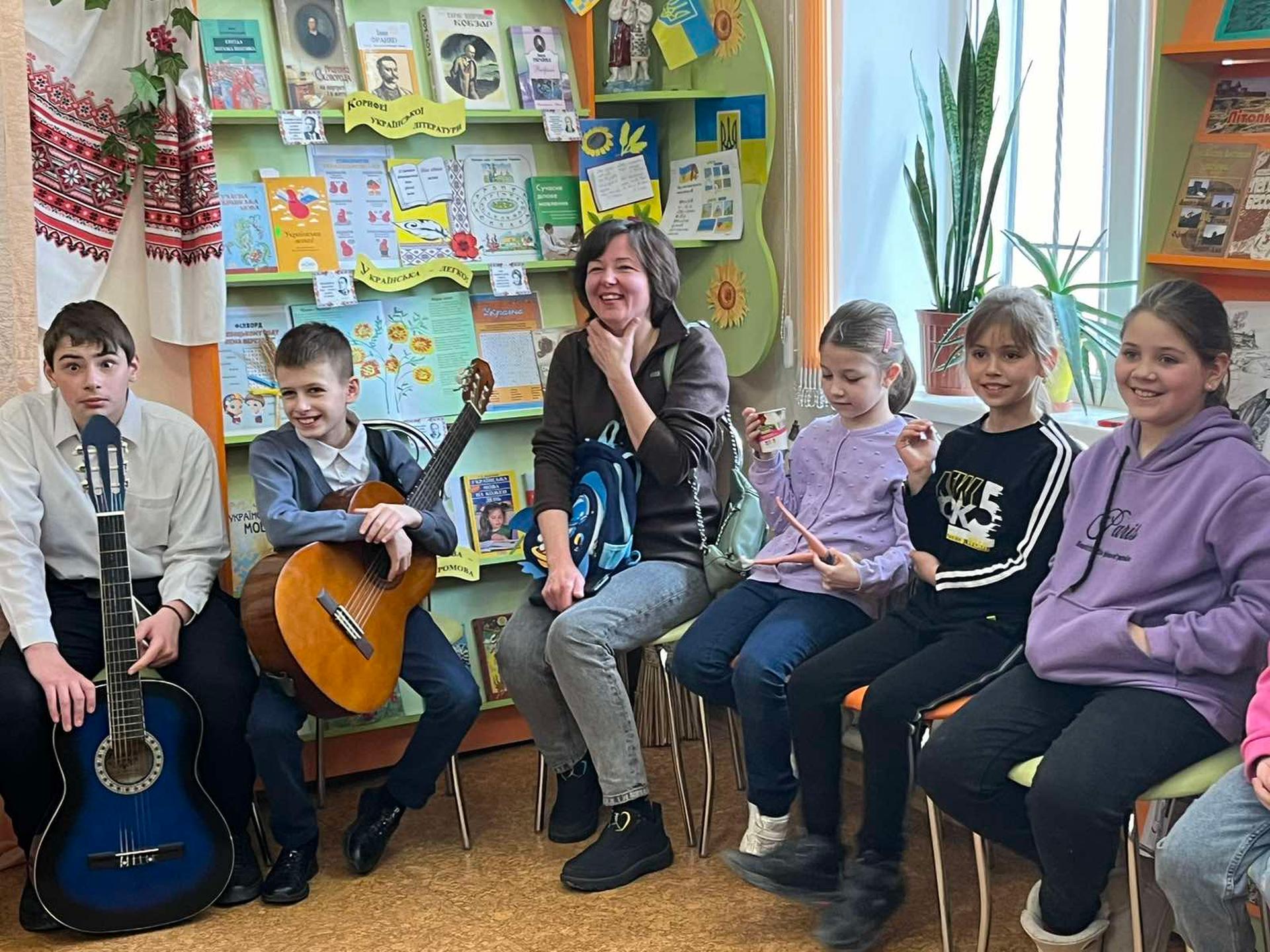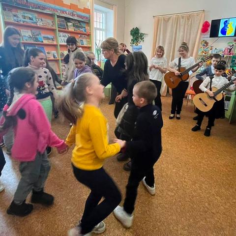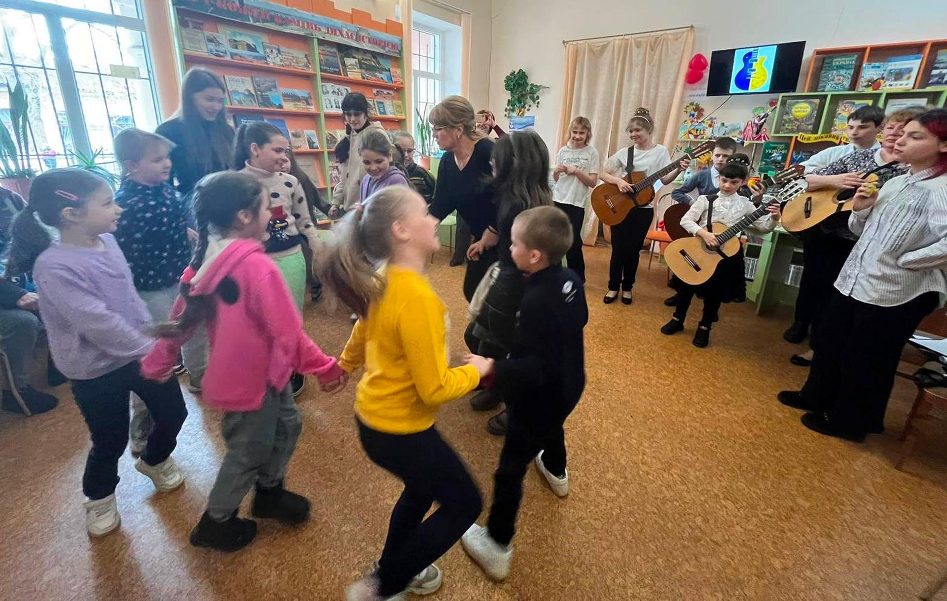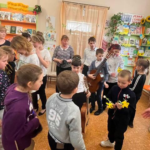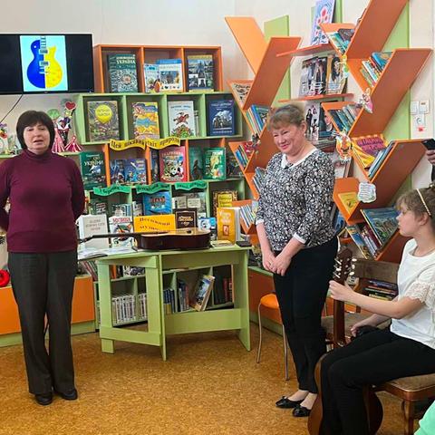 Канікули в бібліотеці – це завжди цікаві зустрічі з книжками, бібліотекарями, друзями, запрошеними гостями. Саме у відділ обслуговування дітей та юнацтва Публічної бібліотеки запросили зразковий ансамбль гітаристів «Торнадо» - викладач та музичний керівник Світлана Шутова (КЗ «Шабівська музична школа», директор Лідія Молорова). Місцеві дітлахи та сім’ї ВПО в нашому місті є постійними відвідувачами бібліотечних заходів. Фан-паті під гітару «Весняний музичний калейдоскоп» об’єднав увагу присутніх різноманітними розповідями та вікторинами.