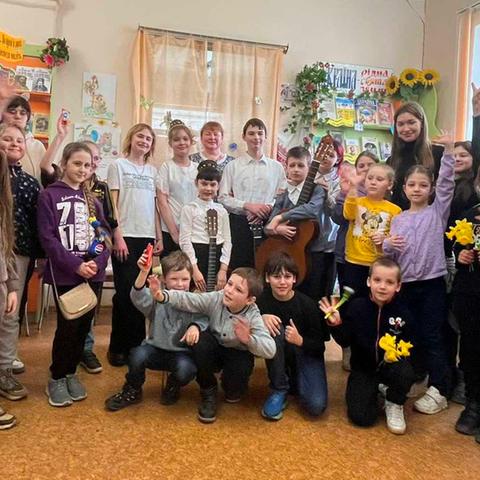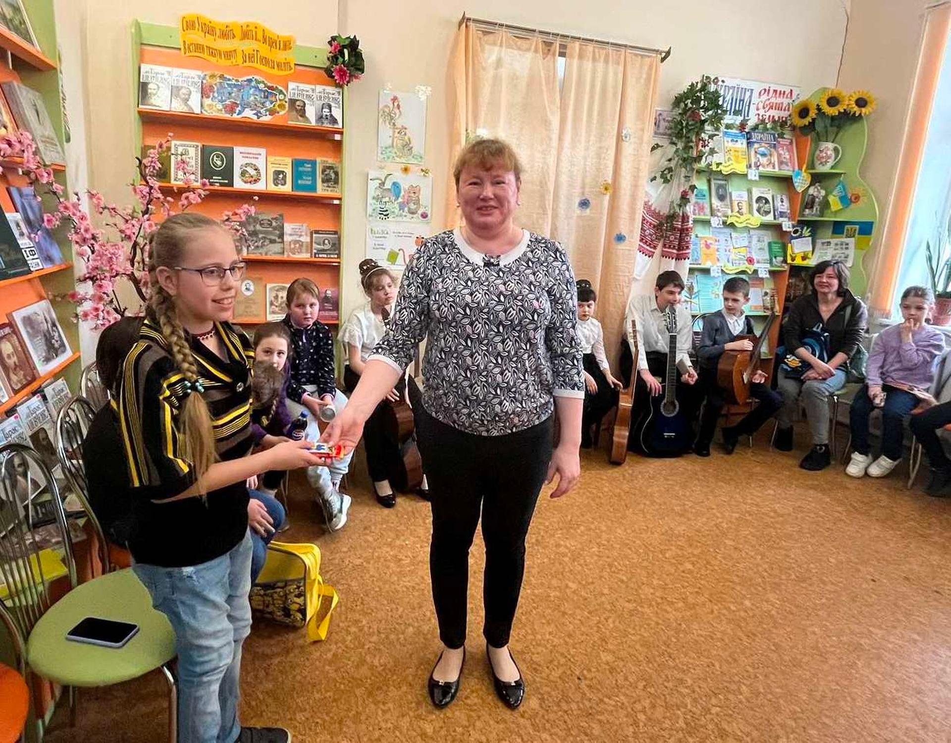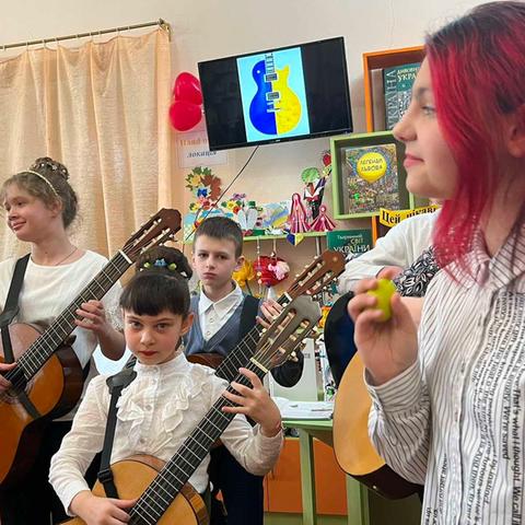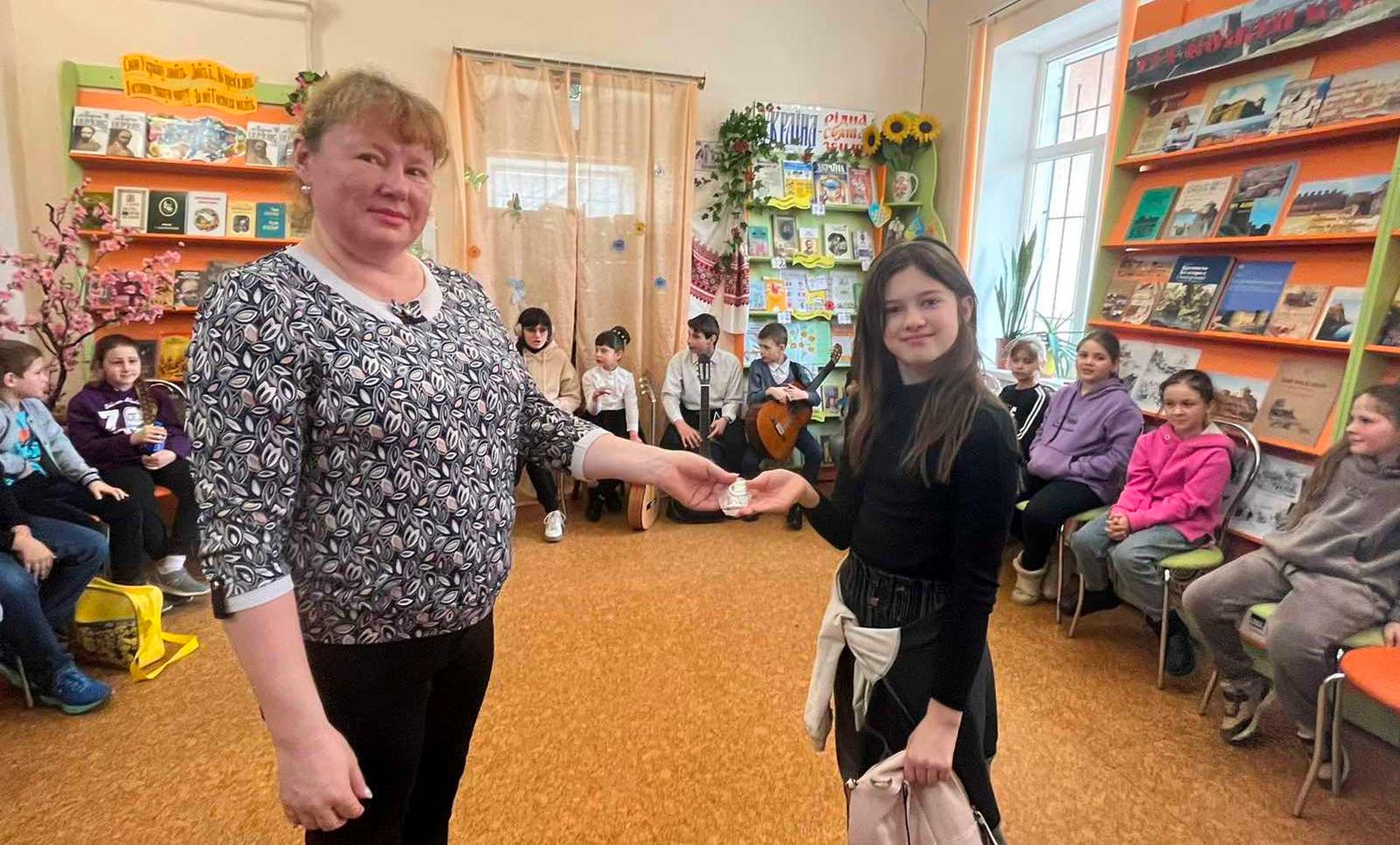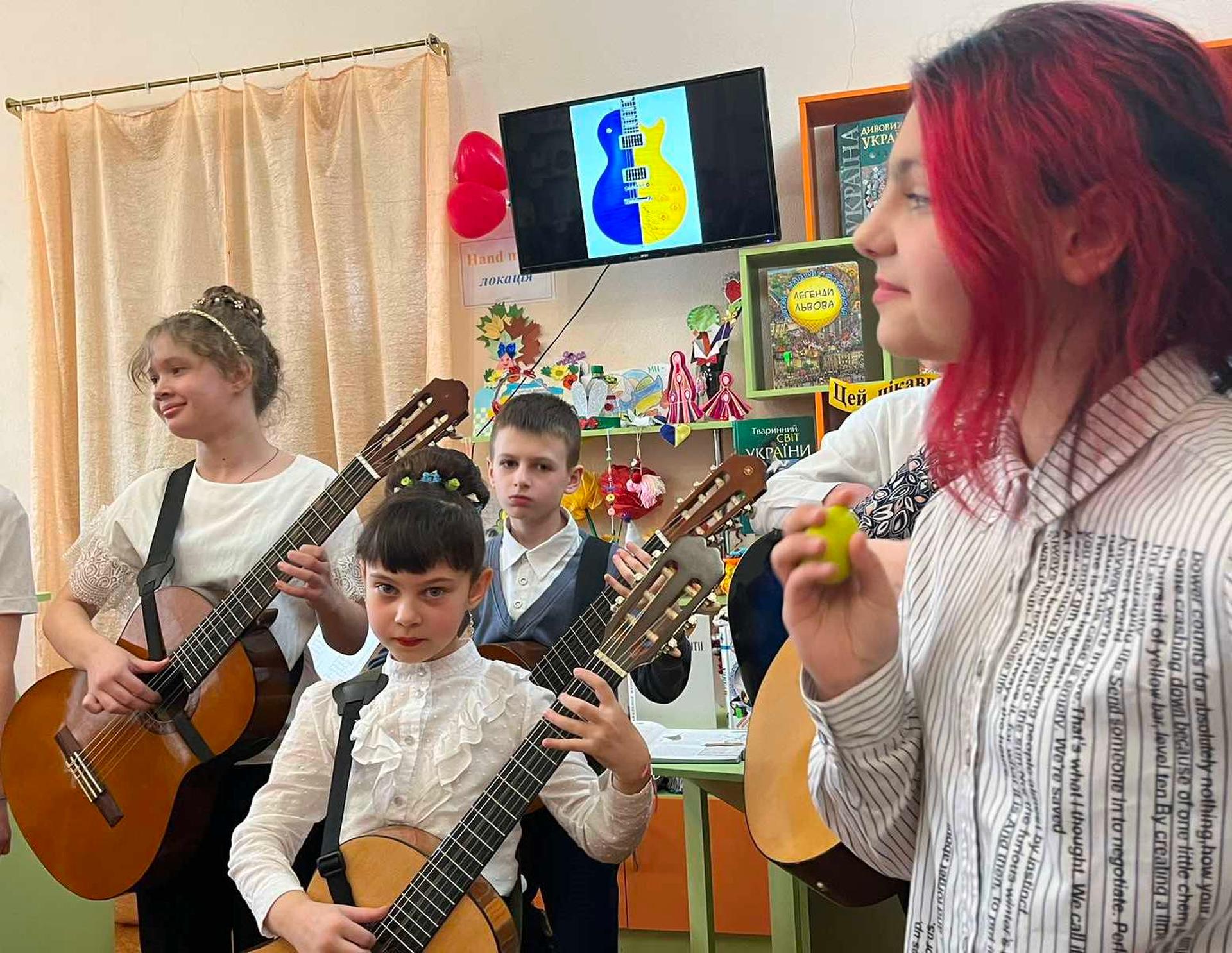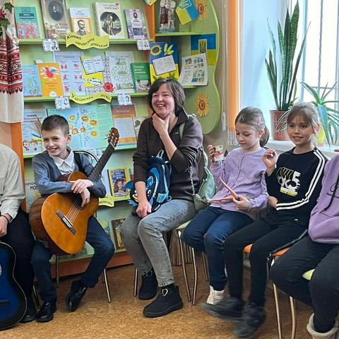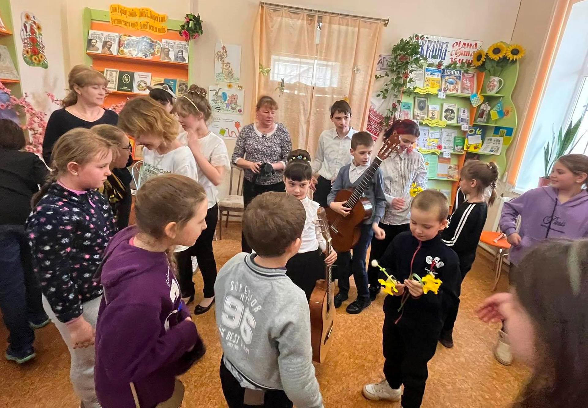 Канікули в бібліотеці – це завжди цікаві зустрічі з книжками, бібліотекарями, друзями, запрошеними гостями. Саме у відділ обслуговування дітей та юнацтва Публічної бібліотеки запросили зразковий ансамбль гітаристів «Торнадо» - викладач та музичний керівник Світлана Шутова (КЗ «Шабівська музична школа», директор Лідія Молорова). Місцеві дітлахи та сім’ї ВПО в нашому місті є постійними відвідувачами бібліотечних заходів. Фан-паті під гітару «Весняний музичний калейдоскоп» об’єднав увагу присутніх різноманітними розповідями та вікторинами.
