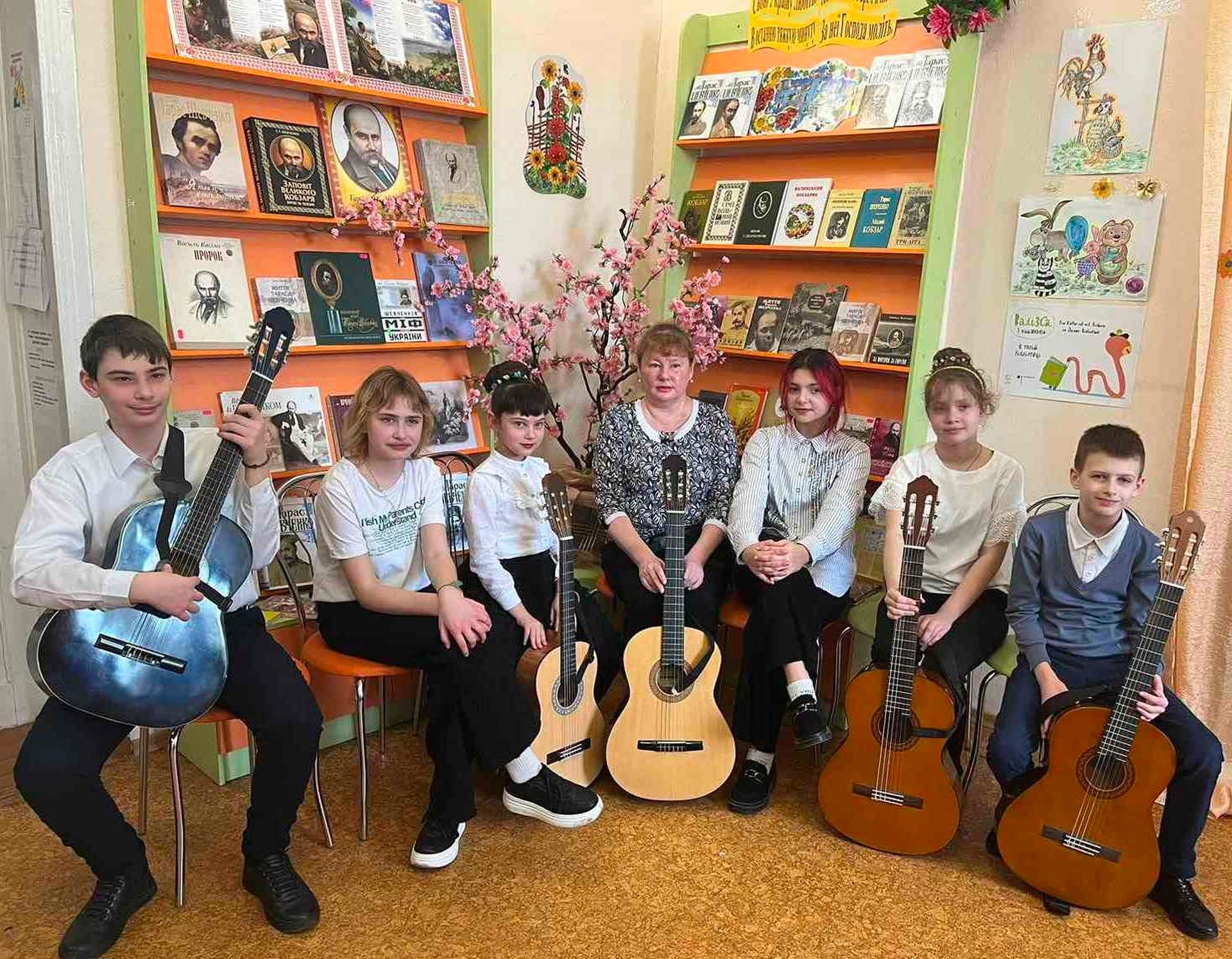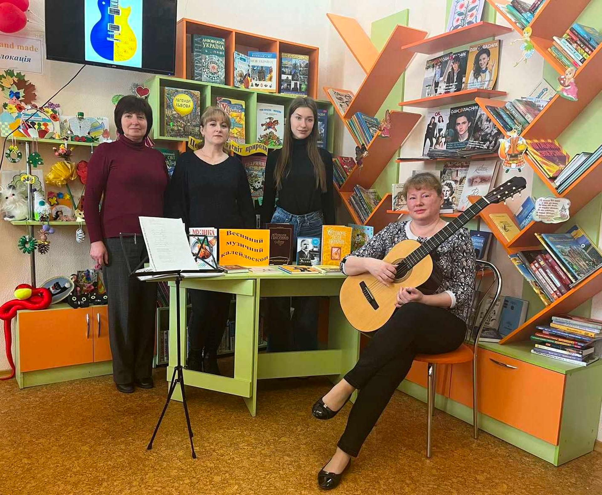 Світлана Шутова познайомила юних глядачів з чарівним музичним інструментом гітарою, історією її виникнення, видами, цікавими фактами. Лунали групові та сольні музичні виконання. Юні музиканти Аріна Шамрай, Олексій Балагура, Лілія Таркан, Ангеліна Щербина, Заріна Олійник, Олексій Волошинов виконали композиції «Мінует», «Румба», «Козачок», «Блюз», мелодію з кінофільму «Іграшка», «Танок ковбоя», іспанську пісню «Кукарача», «Рок біля часу», також лунали пісні «Вінні Пух» Арсена Мірзояна, «Старі фотографії» Скрябіна. А ще відбулися цікаві конкурси, запальні танці - позитивні емоції наповнювали всіх присутніх. Наприкінці заходу бібліотекарі презентували книжкову виставку «Весняний музичний калейдоскоп».