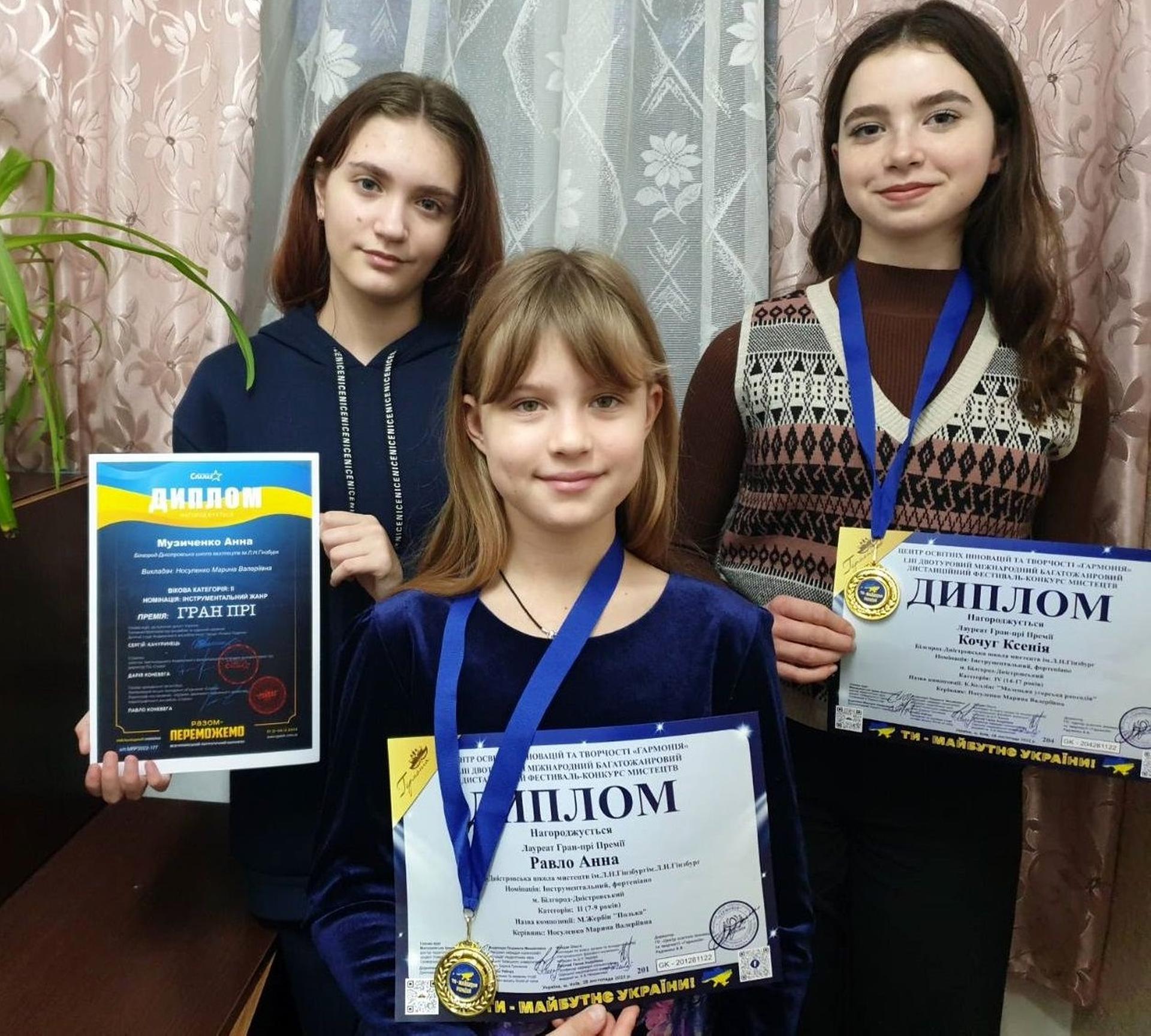 Учні фортепіанного відділу Білгород-Дністровської школи мистецтв ім. Л.Н. Гінзбург Анна Музиченко, Анна Равло та Ксенія Кочуг стали володарями премії Гран-прі на Міжнародному багатожанровому дистанційному фестивалі-конкурсі мистецтв «Ти – майбутнє України» (м. Київ) та Всеукраїнському патріотичному марафоні «Разом − переможемо» (м. Хмельницький).