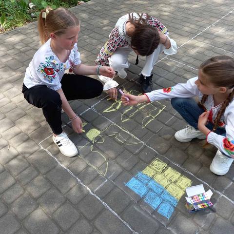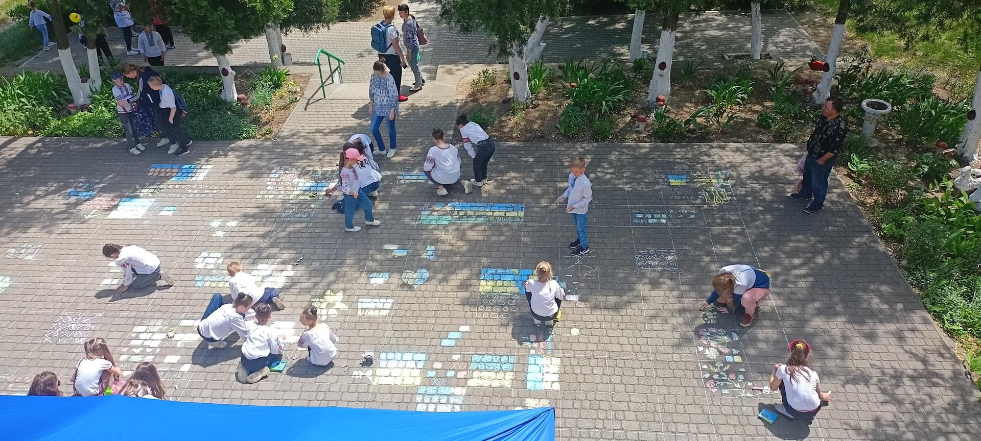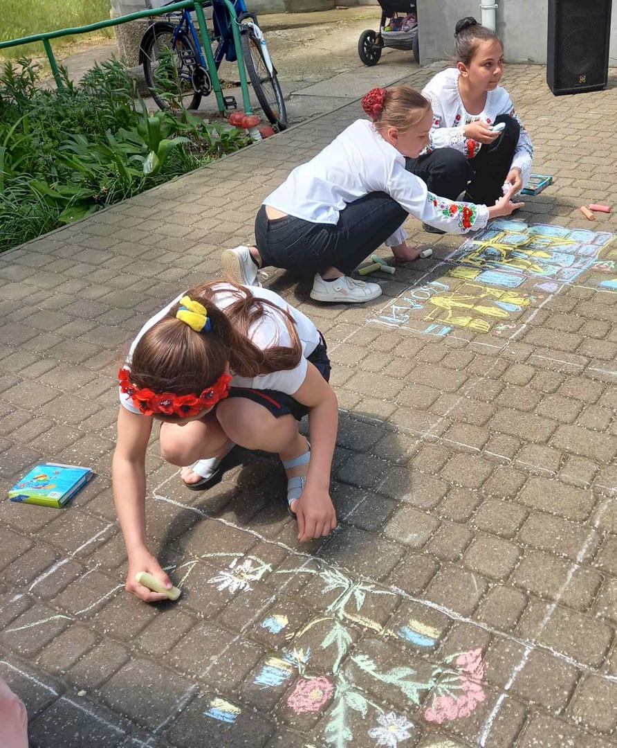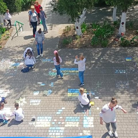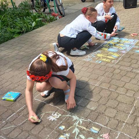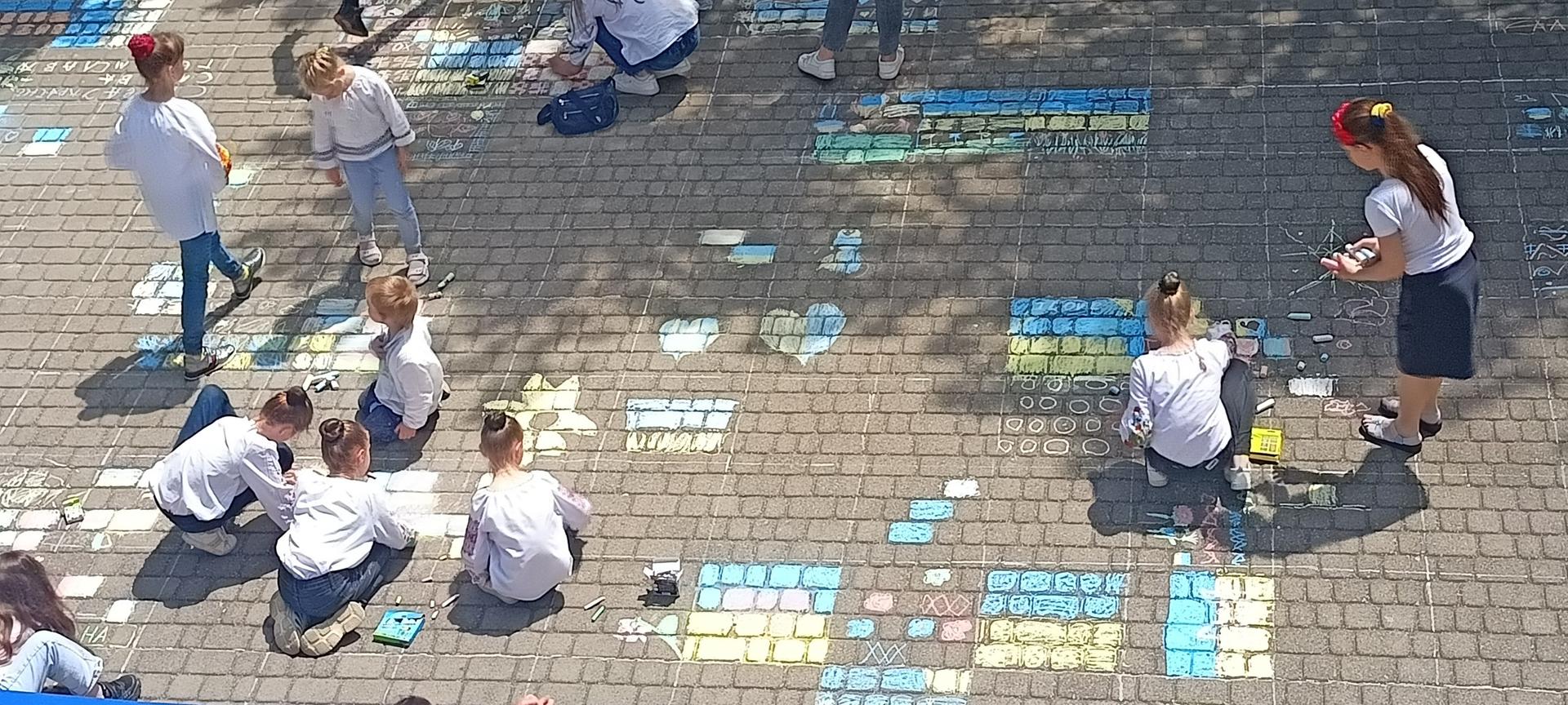 Після виконання танцювальної композиції діти розмалювали асфальт різнокольоровою крейдою під слоганом «Орнамент Перемоги».