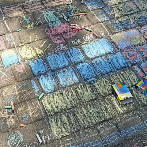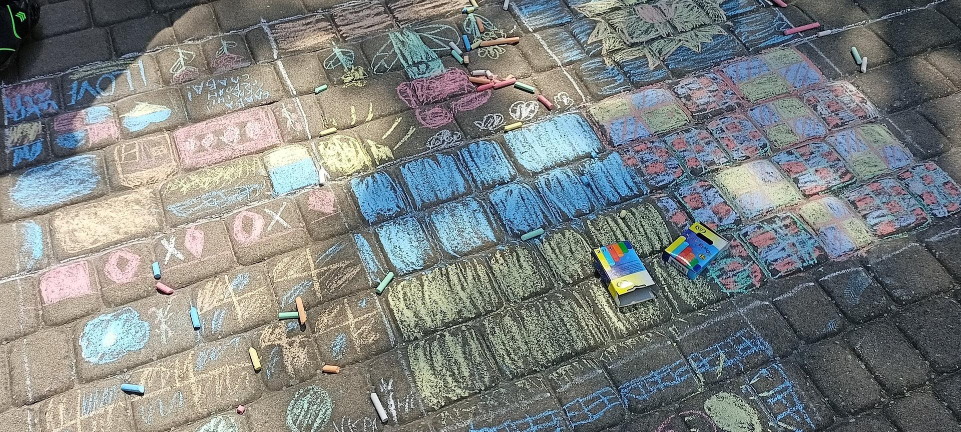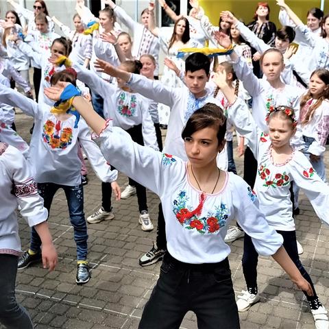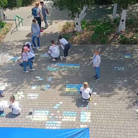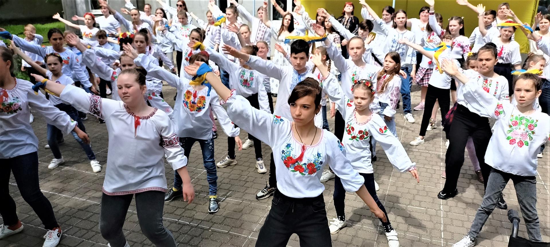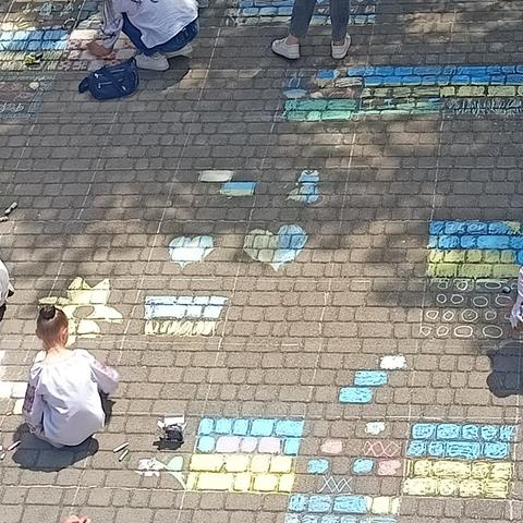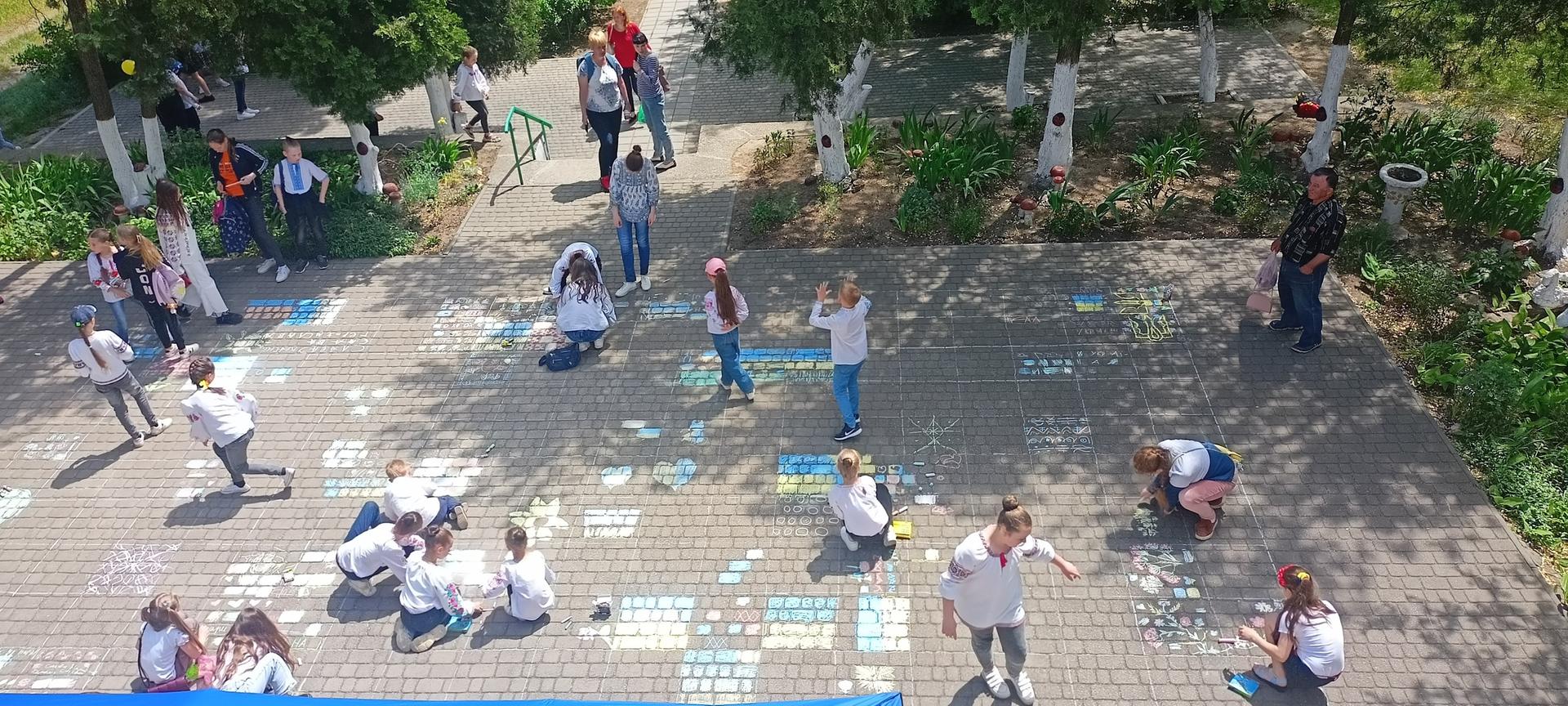Після виконання танцювальної композиції діти розмалювали асфальт різнокольоровою крейдою під слоганом «Орнамент Перемоги».