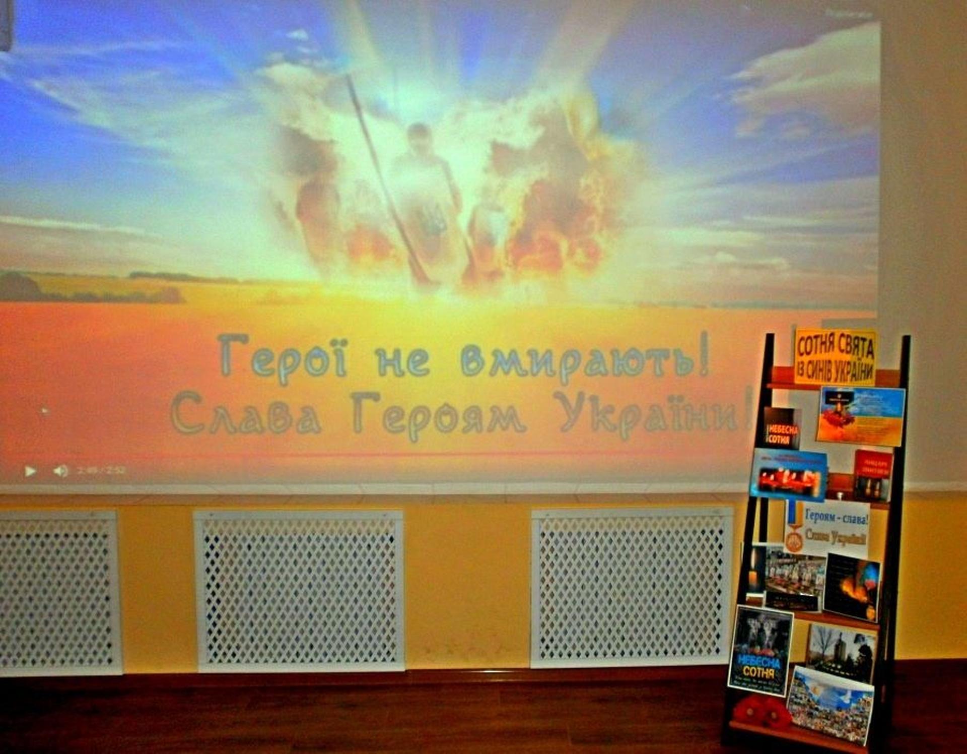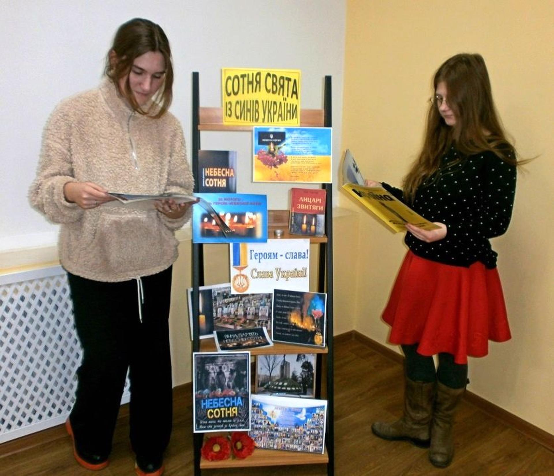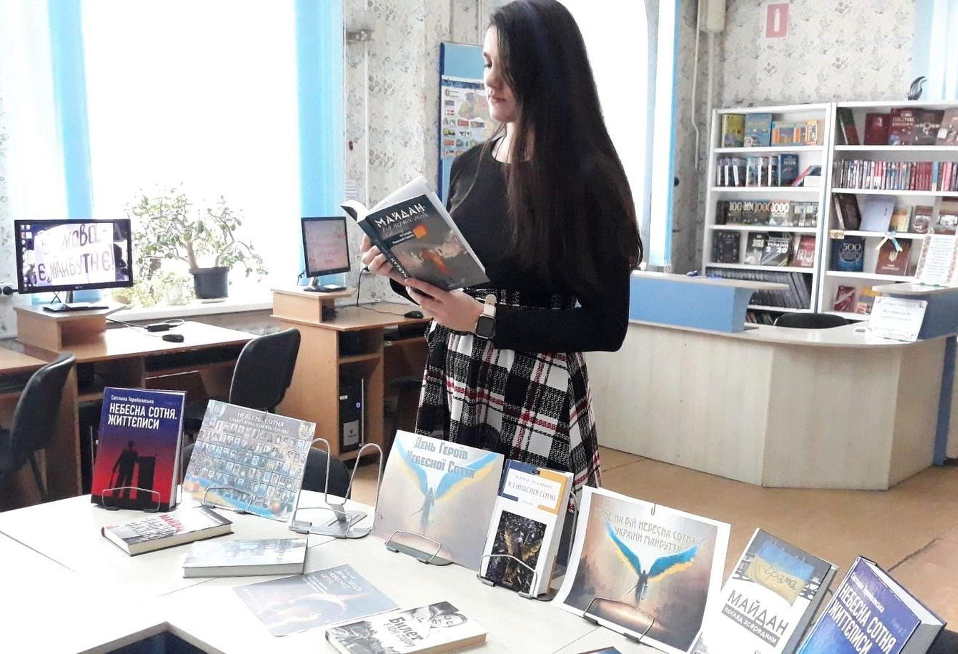 В бібліотеках експонуються книжкові виставки «Кличе в бій Небесна Сотня за України майбуття» - в Публічній бібліотеці, «Реквієм Небесній Сотні» - у відділі обслуговування дітей та юнацтва Публічної бібліотеки.