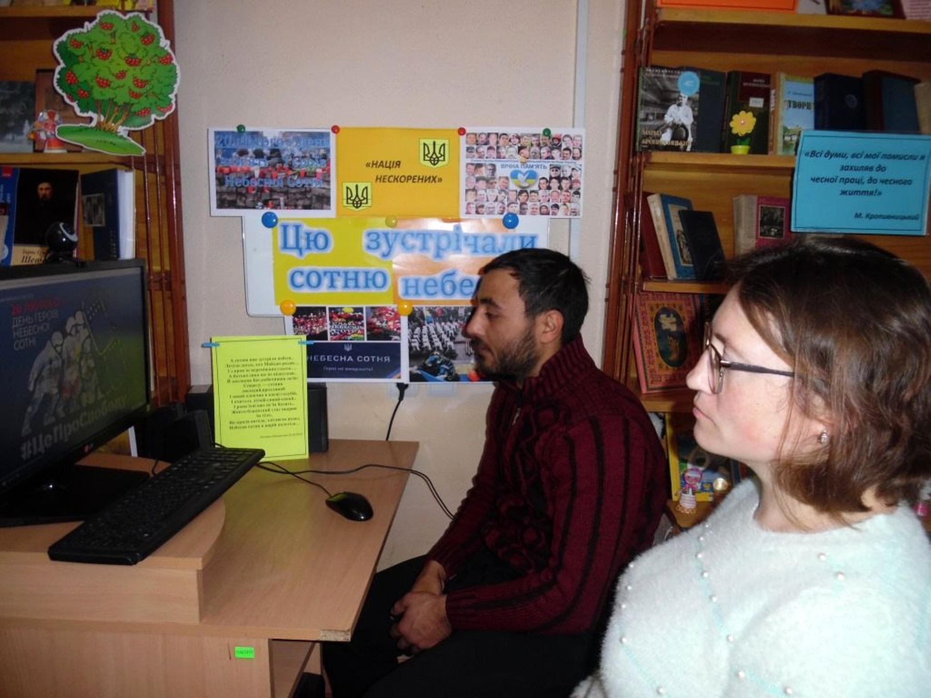 Відео-перегляд «Сотня свята із синів України» пройшов в бібліотеці-філії ім. І. Нечуя-Левицького, коментована відео-година «Цю Сотню зустрічали небеса» - в бібліотеці-філії ім. М. Кропивницького. Патріотична година «Життя, обірване на злеті» для юнацької аудиторії відбулася в бібліотеці-філії ім. Лесі Українки.