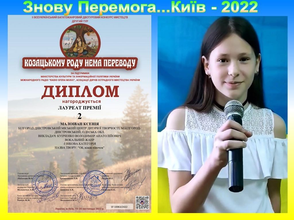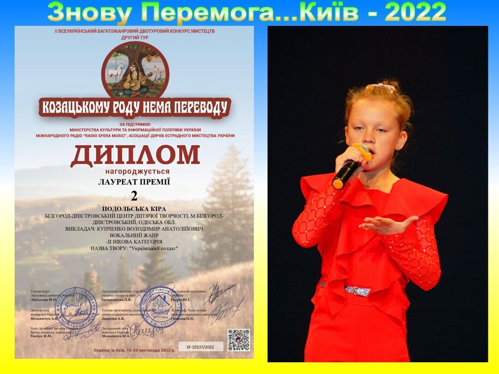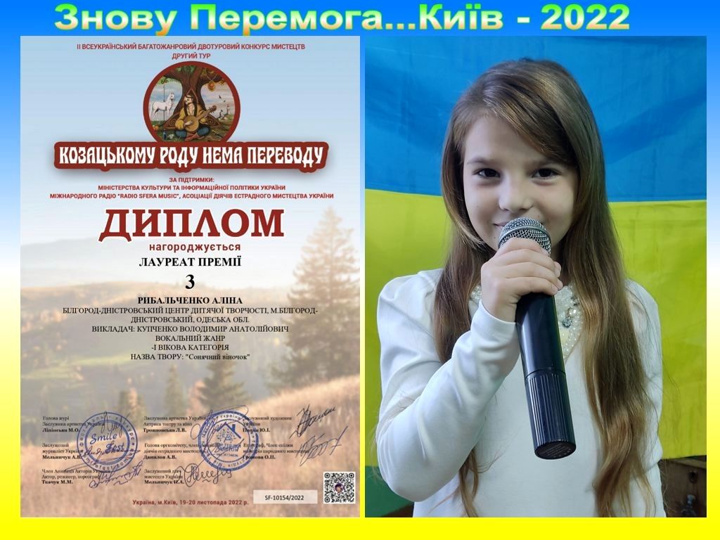 Вихованки студії сучасної пісні «Час мріяти» міського Центру дитячої творчості взяли участь у ІІ Всеукраїнському багатожанровому конкурсі мистецтв «Козацькому роду нема переводу» (місто Київ), який відбувся за підтримки Міністерства культури та інформаційної політики України та Міжнародного радіо "RADIO SFERA MUSIC".