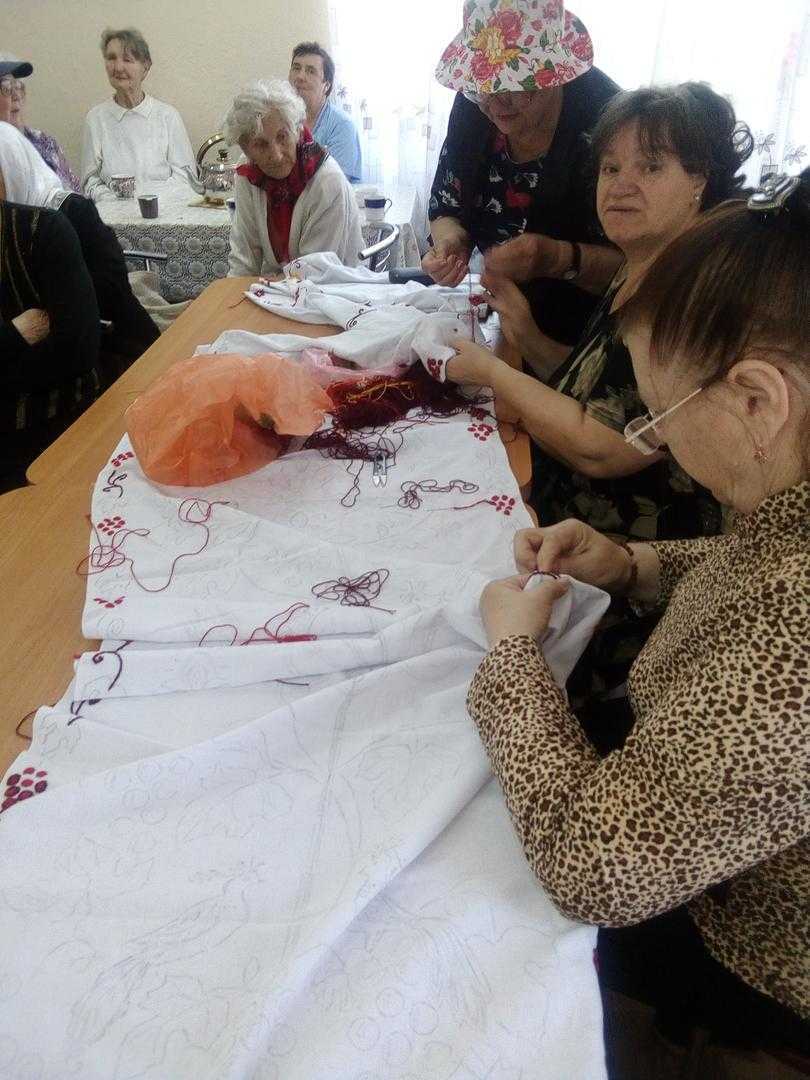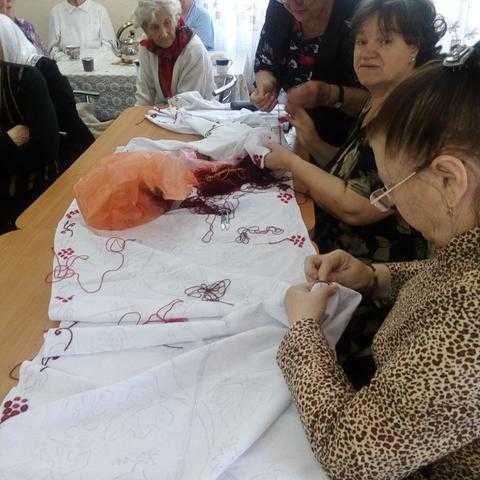 Підопічні згадували, як матері передавали їм свої узори, як займалися вишиванням на вечорницях і довгими осінньо-зимовими вечорами. У залі лунали українські пісні, що завжди були неодмінними супутницями вишивання .