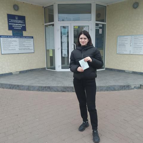Дівчина обрала для себе професійну підготовку за навчальною програмою «Контролер-касир». У листопаді 2021 року приступила до навчання в Одеському центрі професійно-технічної освіти ДСЗ, за індивідуальною формою. Три місяці проминули як мить. Під час проходження виробничої практики на ПП «Таврія Плюс» в. м. Одеса, Ганна справила прекрасне враження на роботодавця. Їй запропонували робоче місце відразу ж після одержання свідоцтва державного зразка. 21 лютого 2022 року дівчина вдало склала іспит, і вже цього тижня на неї чекають на роботі!