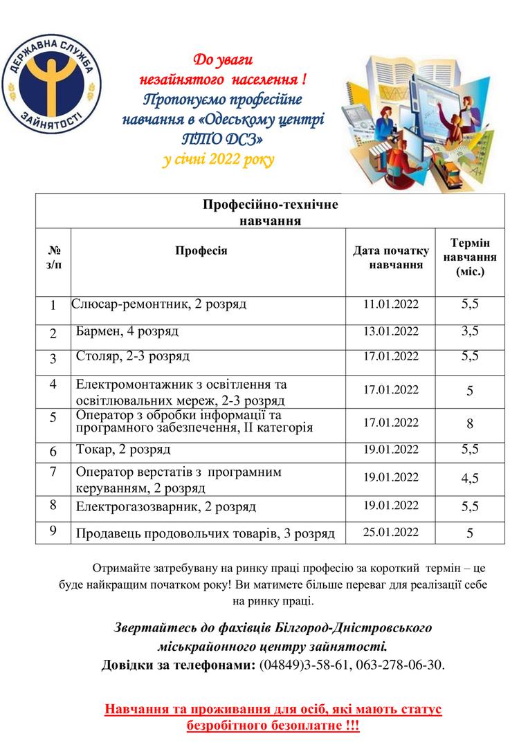 Звертаємо вашу увагу на графік формування навчальних груп у січні 2022 року