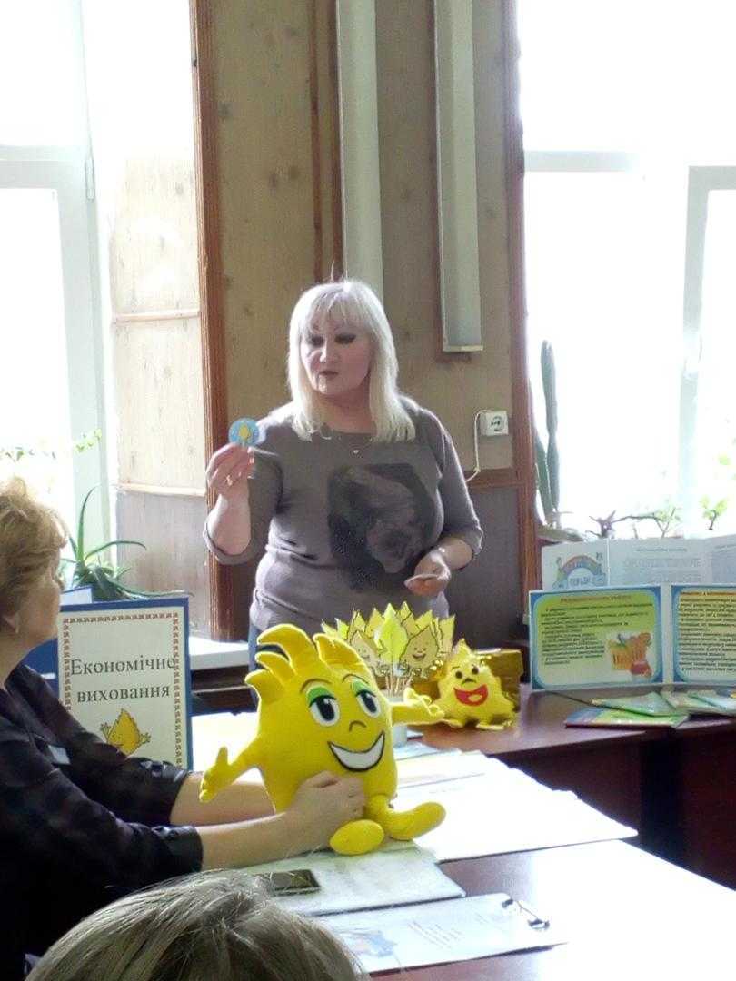 Досвідчений педагог-наставник Тетяна Іванівна Удовік (ДНЗ №3 «Дзвіночок») ознайомила учасників заходу з власними напрацюваннями «Спільна робота закладу дошкільної освіти та родини з економічного виховання».