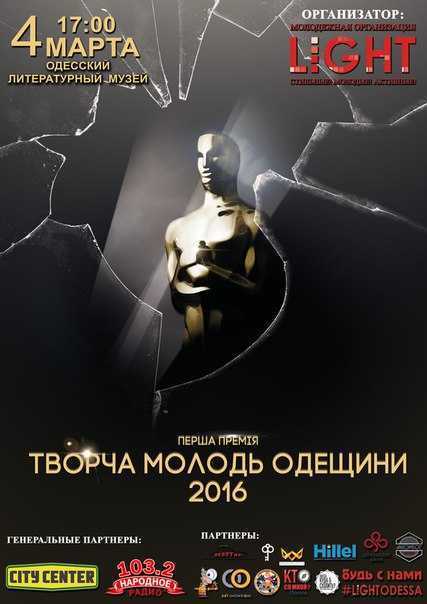 4 марта 2016года в Золотом зале Одесского Литературного музея состоялась торжественная церемония награждения победителей Первой премии «Творча молодь Одещини 2016».