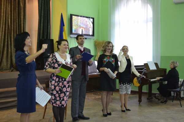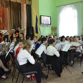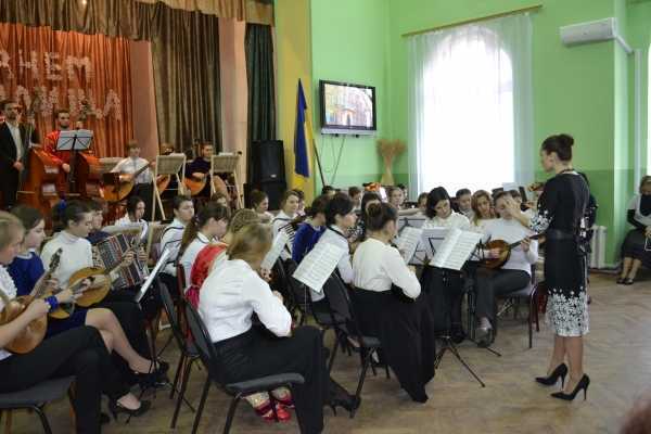 Концерт відкрив оркестр народних інструментів. Ведучі заходу Віталій Пришляк та Світлана Азізагаєва нагадали присутнім славні сторінки історії педагогічного училища.