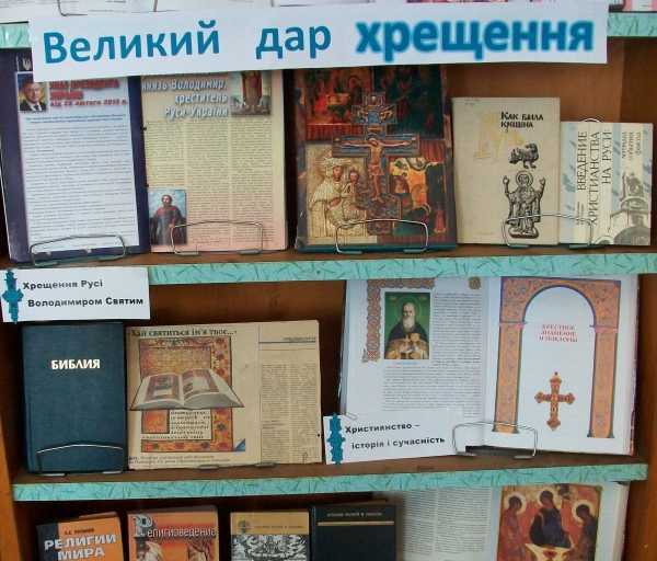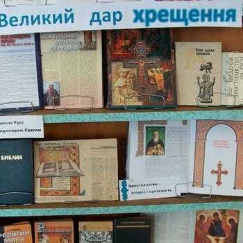 Хрещення Русі — це перша сходинка до духовності нашого народу. Бібліотеки КУ «Централізованої бібліотечної системи» підготували до цієї дати наступні заходи. «Великий дар Хрещення» - книжкова експозиція (ЦМБ ім. М.Горького), «Хрещення Русі-України» - книжкова виставка – огляд (бібліотека ім. Лесі Українки), «Хрещення Русі – України набуття історії» - відео екскурс (бібліотека ім. О.Пушкіна), «Золота доля Київської Русі» - тематична година (бібліотека ім. М.Кропивницького).