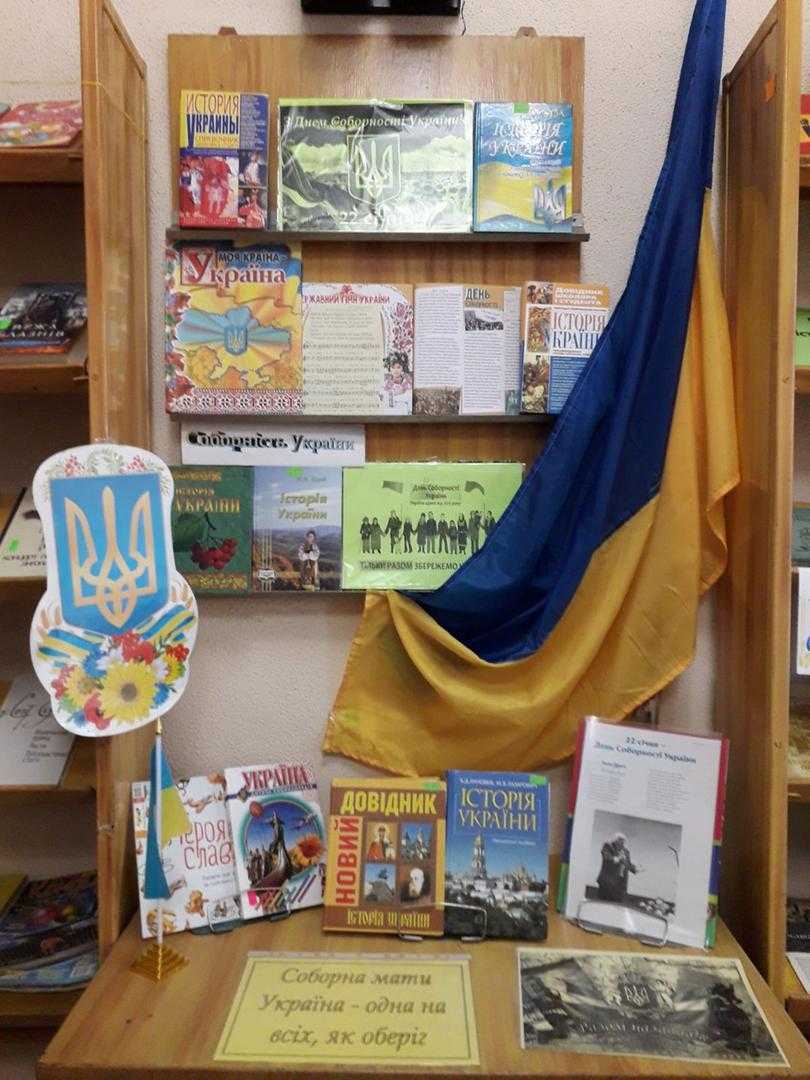 Також в бібліотеках міста проведено цикл інформаційно-патріотичних заходів: інформреліз «Великий день єднання» в бібліотеці ім. О. Пушкіна, інформаційна година «Акт Злуки: відтворення історичної правди» в бібліотеці ім. Л. Українки, історична година «Щоб сяяв Соборності шлях» в бібліотеці ім. М. Кропивницького. В бібліотеці для дітей та юнацтва ім. В. Катаєва експонується книжкова виставка «Україна Соборна – моя гордість і слава».