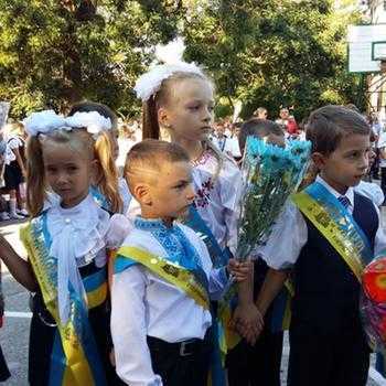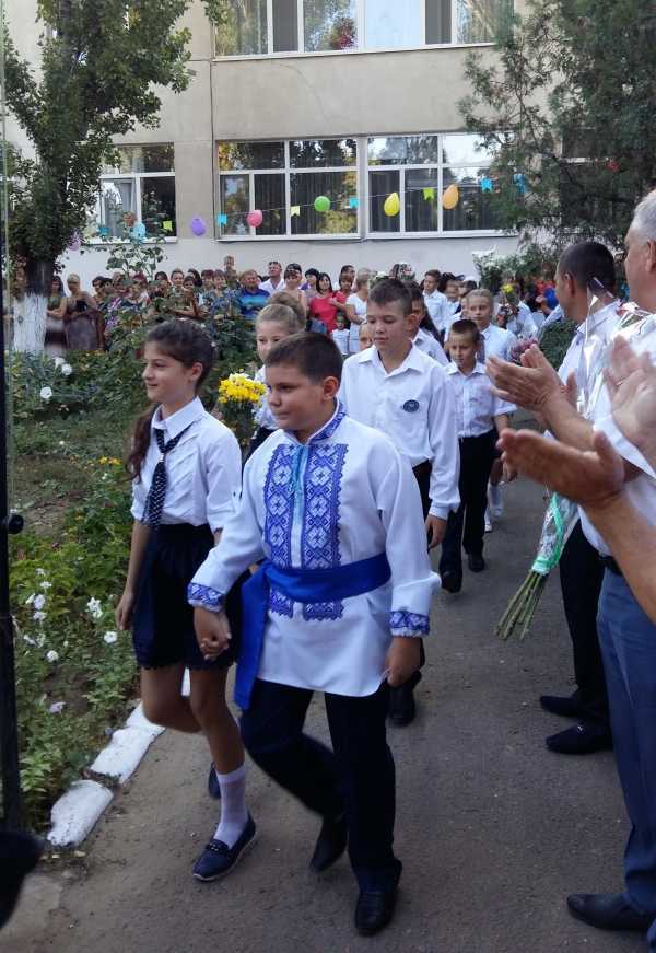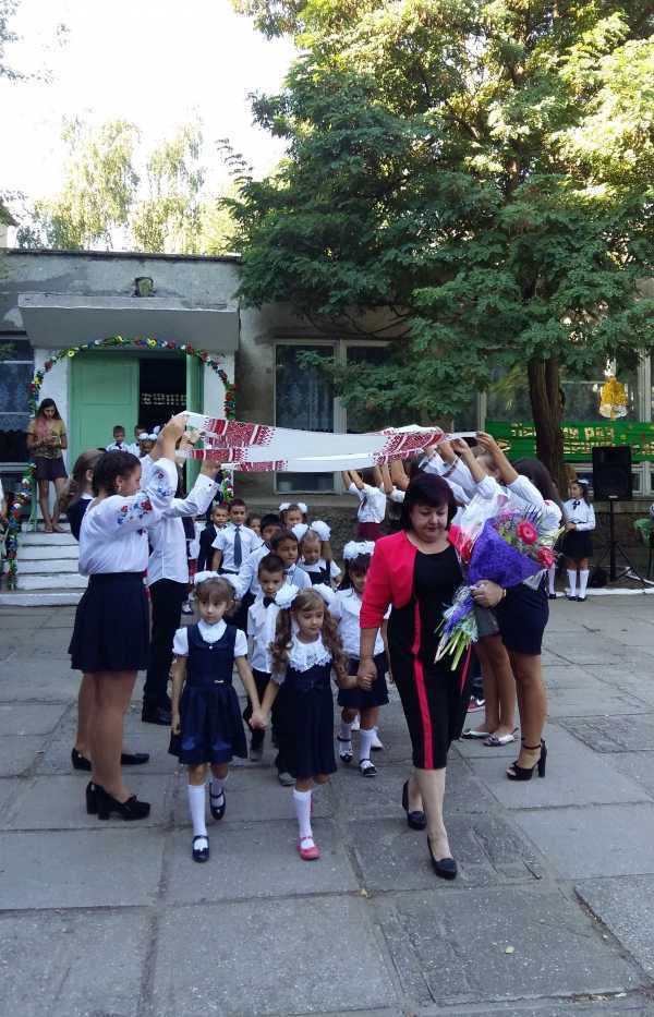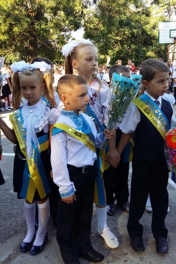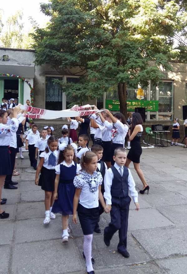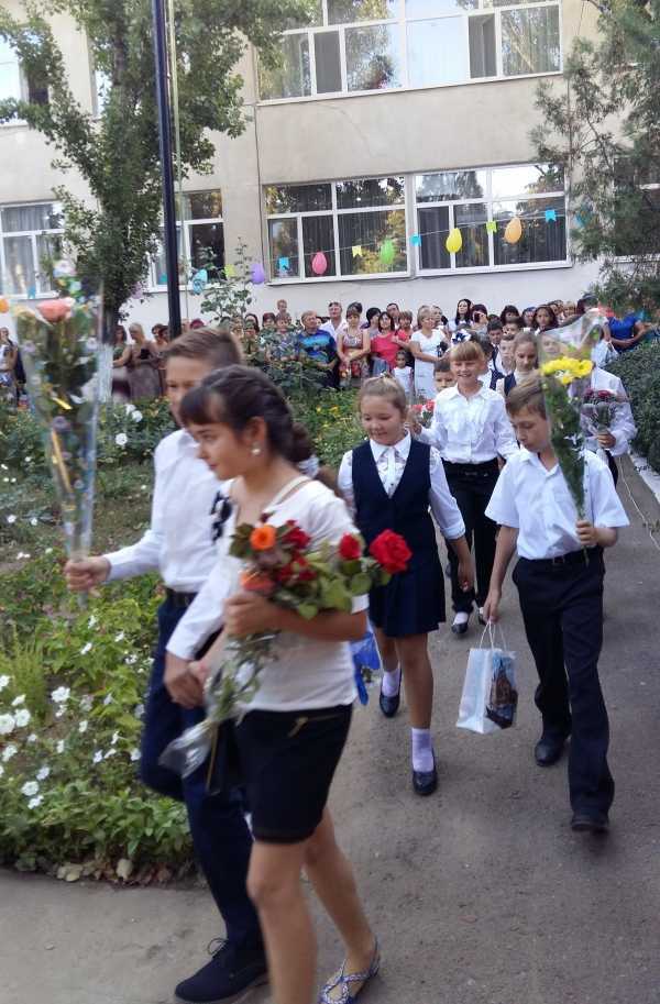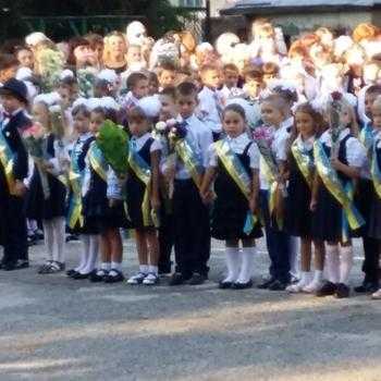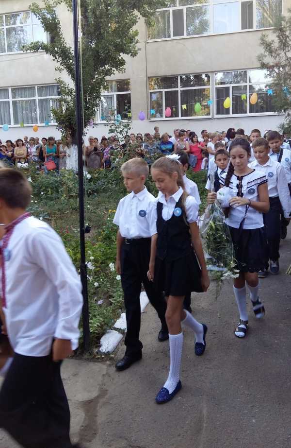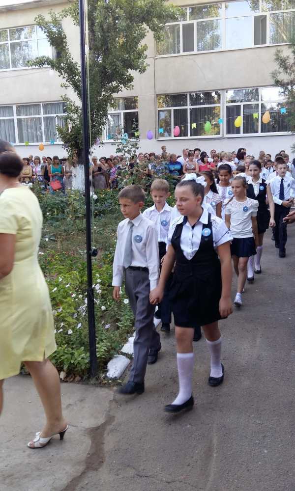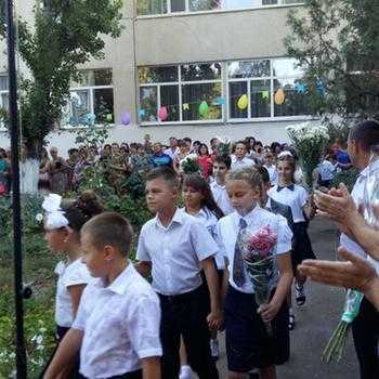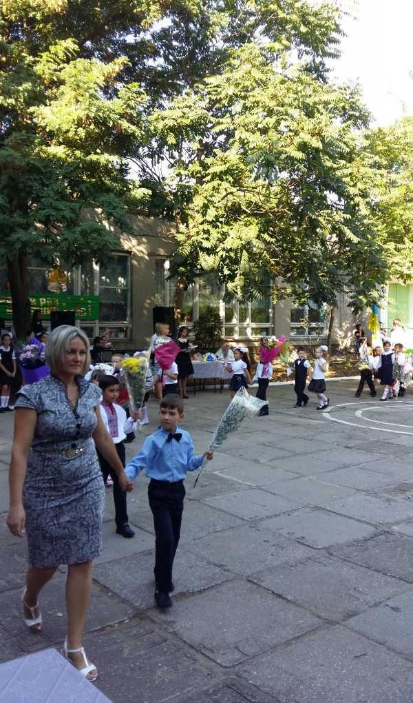 В школе № 3 торжественная линейка началась в 9.00. Директор школы Татьяна Лимаренко и гости школы пожелали родителям и школьникам мирного неба над головой.