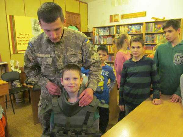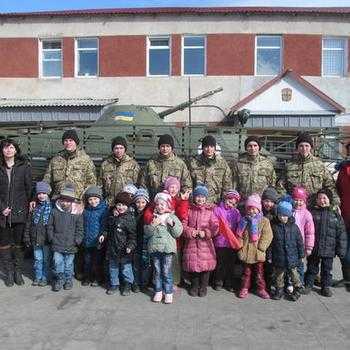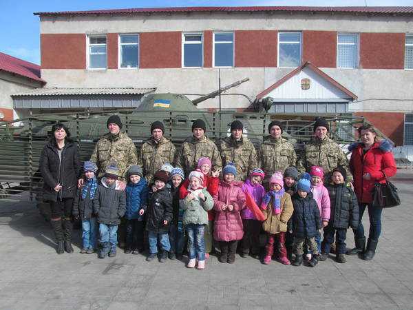 Військовослужбовцями полку було організовано проведення екскурсії по військовій частині. Діти ознайомились із побутовими умовами життя сучасного солдата. Особливий інтерес у дітей викликало ознайомлення із зразками бойової техніки, яка реально приймала участь в зоні проведення антитерористичної операції. Під час проведення екскурсії та бесіди діти мали змогу побачити елементи бойової екіпіровки сучасного солдата та навіть приміряти її на себе.