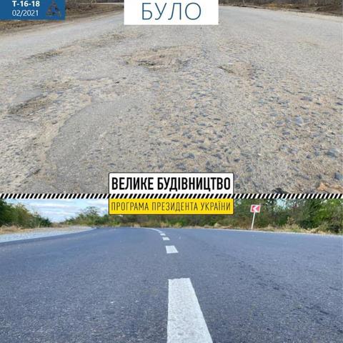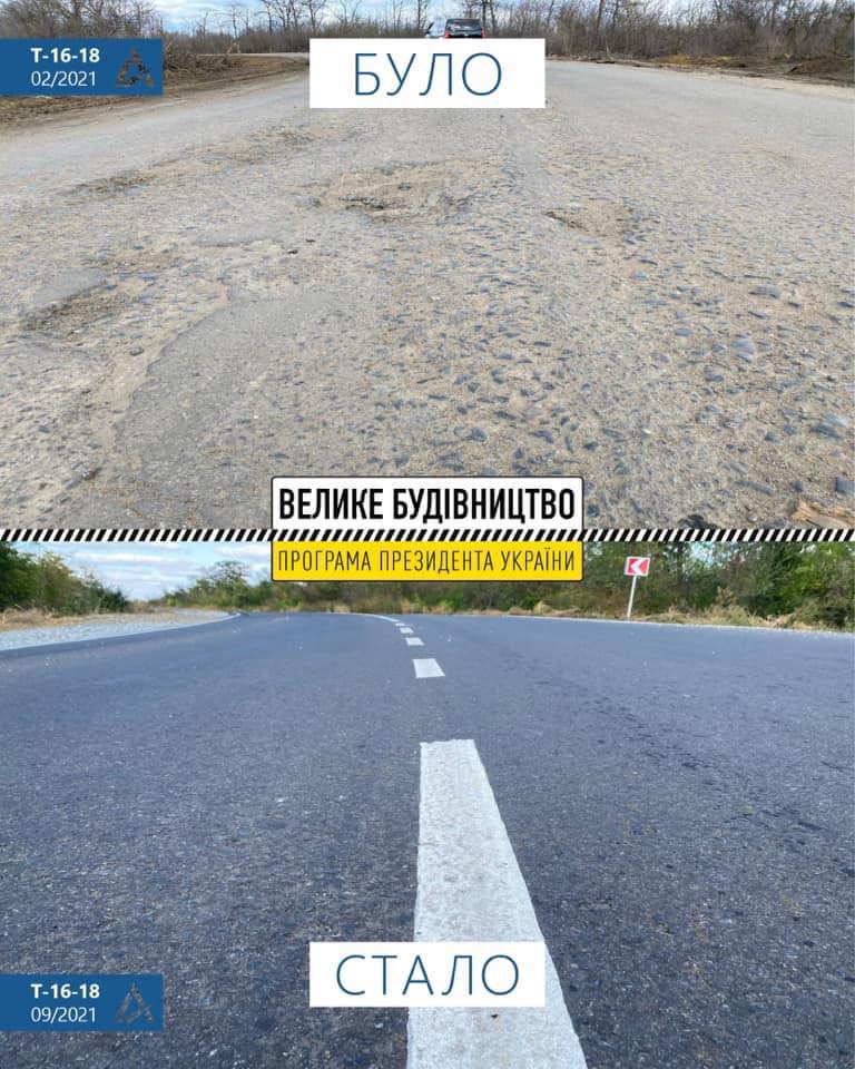В рамках програми Президента «Велике Будівництво» в Одеській області завершились ремонтні роботи на ділянці дороги Т-16-18, яка з’єднує місто Роздільна з автомобільною дорогою Р-33. Генеральний підрядник – ТОВ «Березівкаагрошляхбуд».