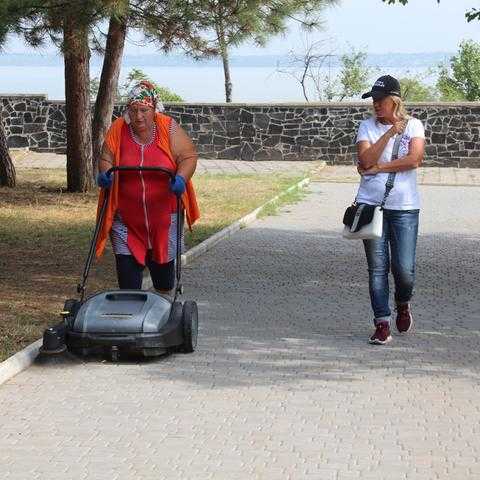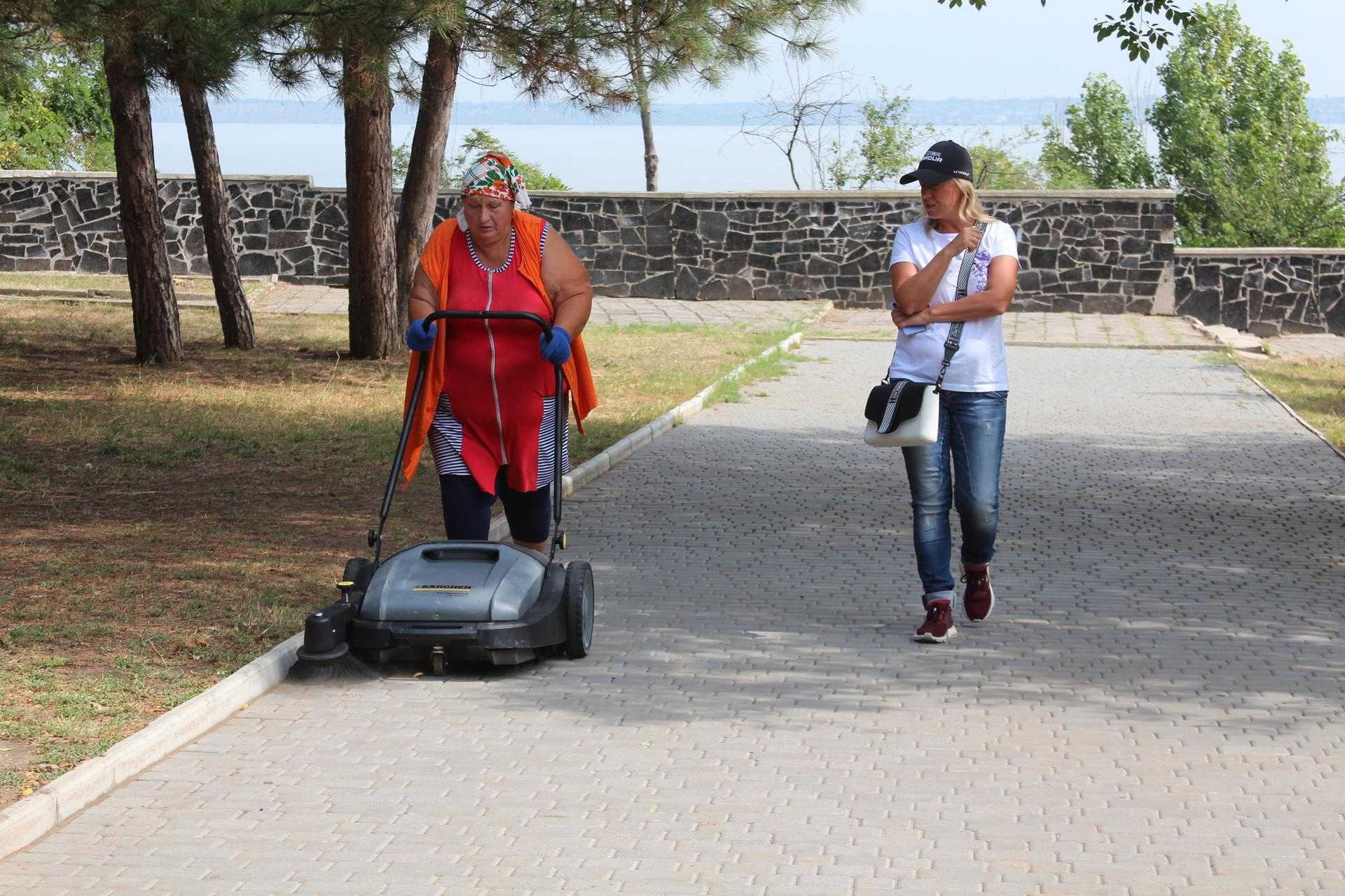Перша така машина надійшла в допомогу двірникам та озеленювачам міста для наведення порядку в парках та скверах. За її допомогою можна швидко та ефективно очищати тротуари, при цьому сміття збирається в спеціальний контейнер машини, який швидко знімається для утилізації зібраного сміття, при цьому, не потребує контакту з брудом. Ергономічна рукоятка підганяється під зріст працівника і повністю складається для зберігання.
