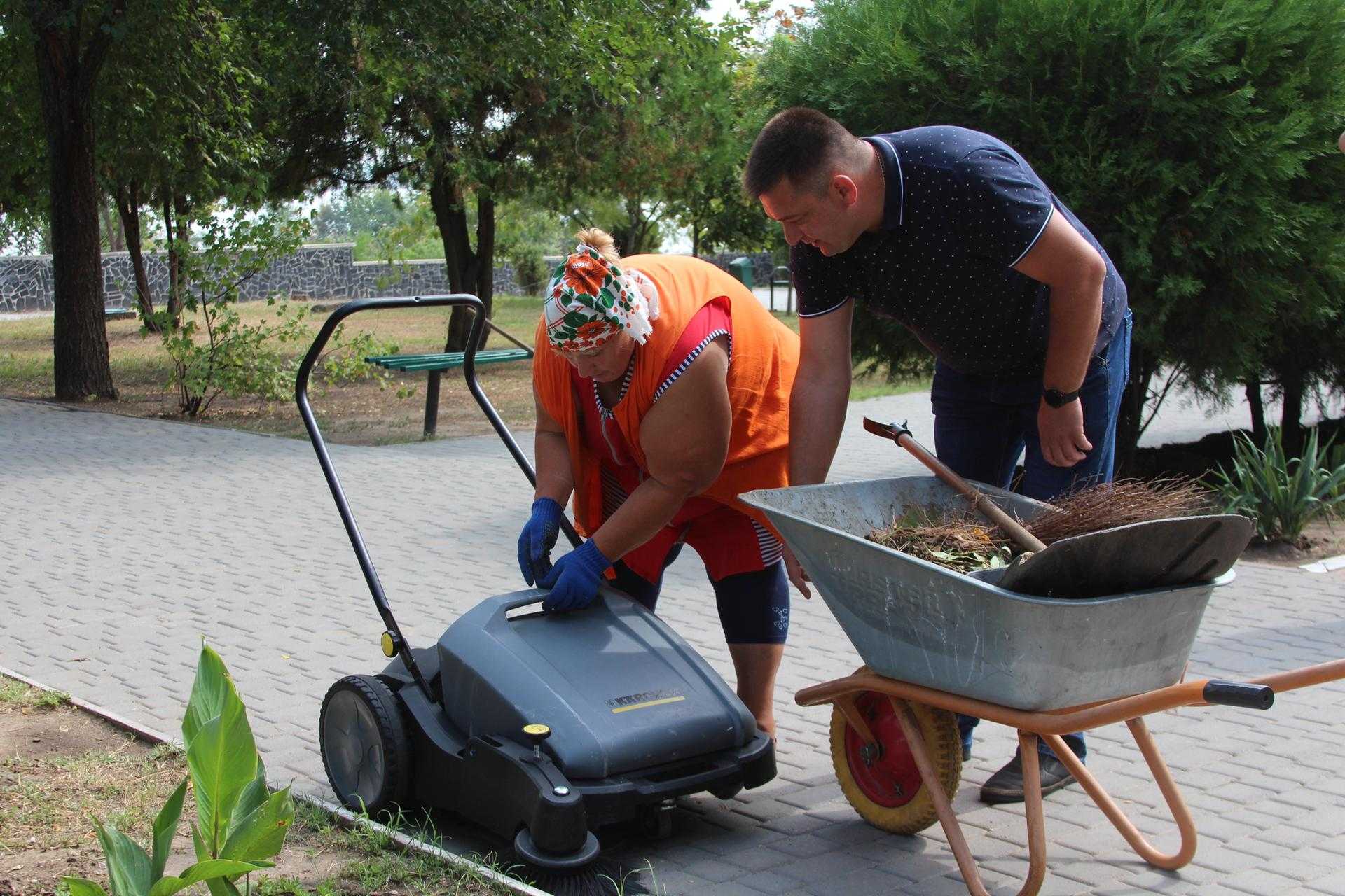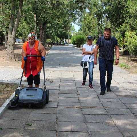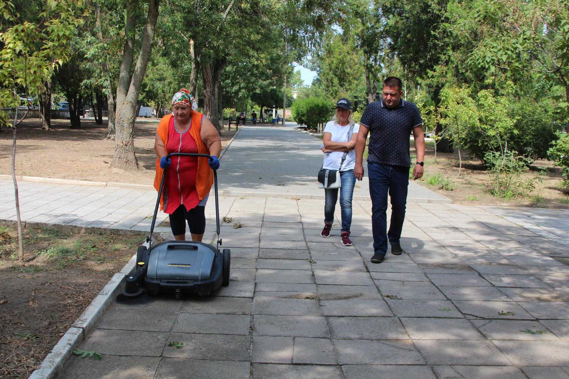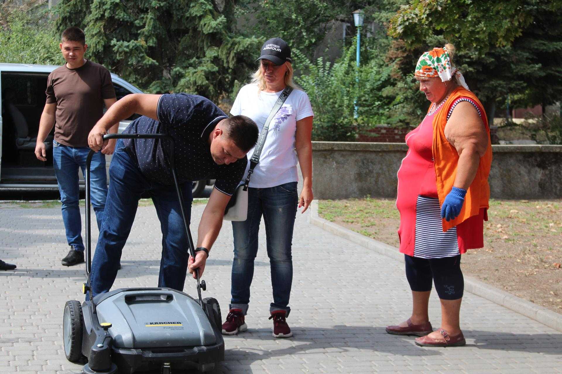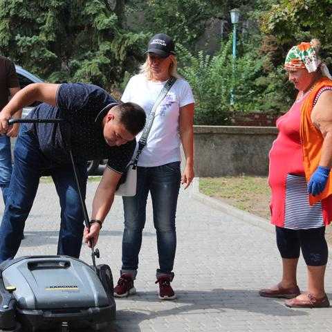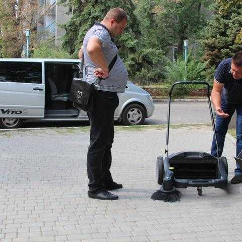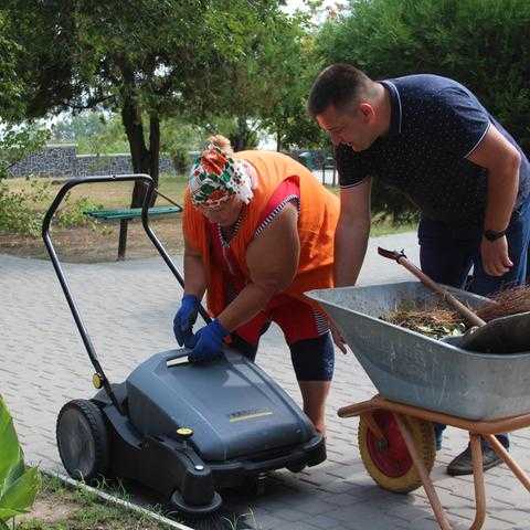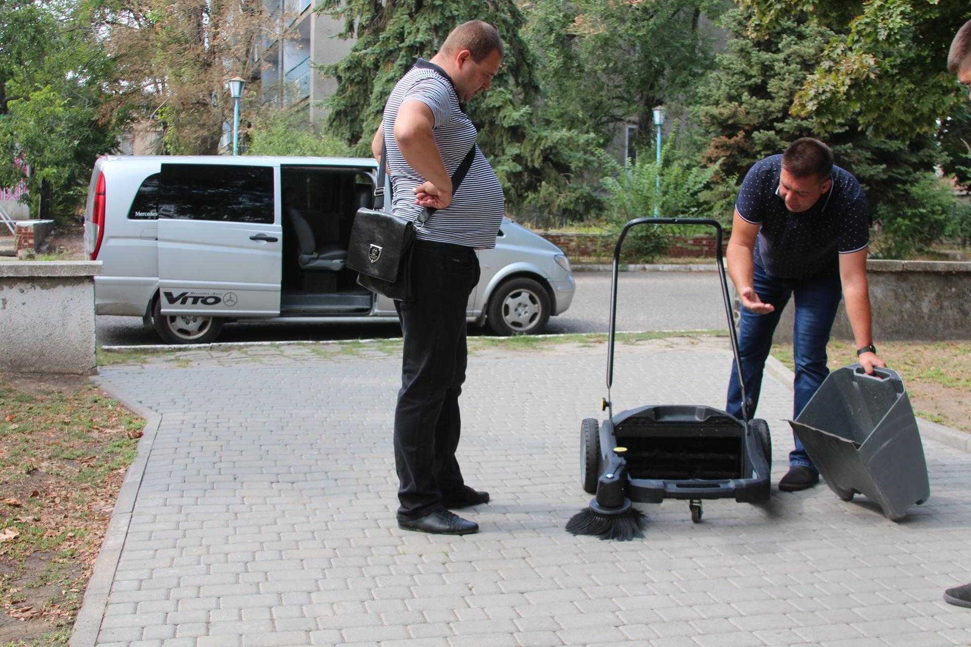 27 серпня заступник міського голови Андрій Криштопов передав керівнику дільниці озеленення міського центру «Благоустрій» Олесі Голодок ще один засіб малої механізації - нову ручну механічну підмітальну машину Kärcher.