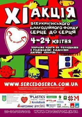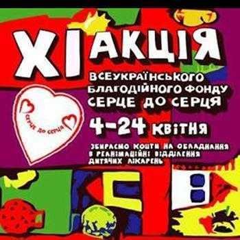 Цьогоріч Всеукраїнський благодійний Фонд «Серце до серця» організував ХI Всеукраїнську благодійну акцію, яка триватиме з 4 до 24 квітня 2016 рік. Кошти збиратимуться з метою придбання медичного обладнання для реанімаційних відділень обласних дитячих лікарень України. По Одеській області збираються кошти для придбання медобладнання для новонароджених дітей для обласної дитячої клінічної лікарні.