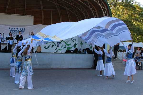 Об этом и других особенностях празднования Еврейского Нового года со сцены гостям парка Мира рассказывал ведущий. Программа состояла из песен, номеров хореографических коллективов из других городов Одесской области, инсценировок и, конечно, сладких угощений.